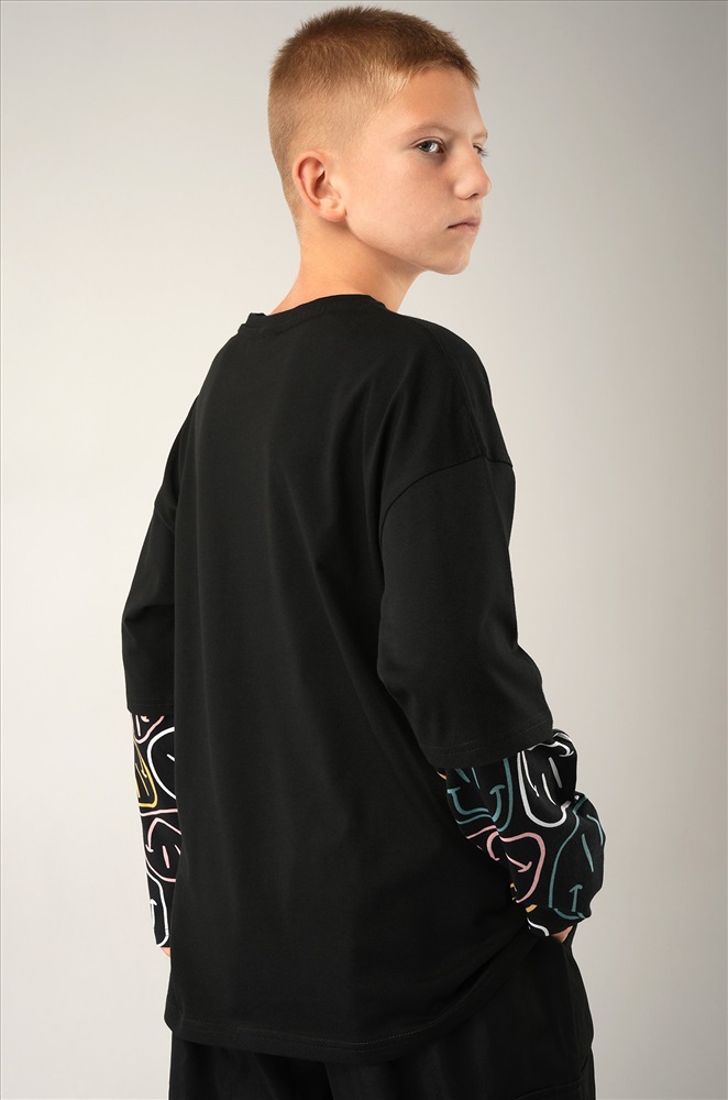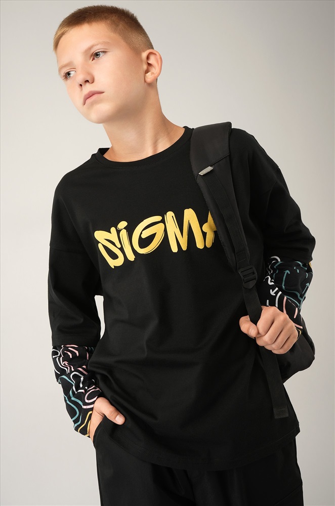 Черный лонгслив для мальчиков и мальчиков подростков — выбор для тех, кто ценит свободу и уличную эстетику.