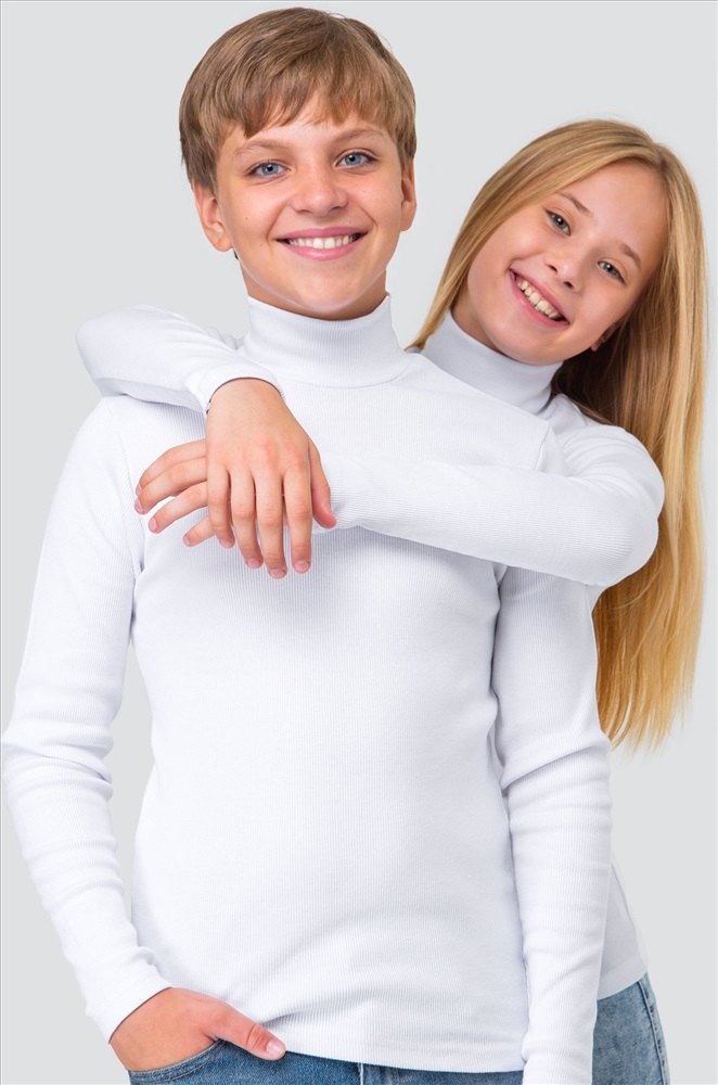 Набор однотонных водолазок в рубчик для детей и подростков выполнен из хлопкового трикотажа лапша. В комплекте 2 шт.
