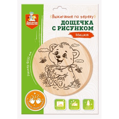 Дощечка с рисунком «Мишка» поможет серьёзно увлечь вашего ребёнка выжиганием и позволит ему своими руками выполнить оригинальный подарок.