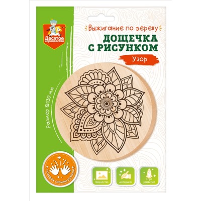 • дощечка из фанеры с нанесённым рисунком – 1 шт. (диаметр 13 см)
