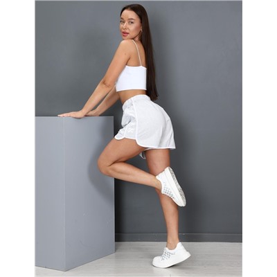цвет: серый Материал: Кулирка меланжированная Трикотаж - Кулирка меланжированная (Хлопок 80%; Полиэстер 20%). Женские шорты выполнены из трикотажного полотна "кулирка". Шорты свободные, с боковыми вставками, пояс на эластичной тесьме, низ шорт разноуровневый, В качестве отделки шорты обработаны контрастной косой бейкой. Комментарии к товару