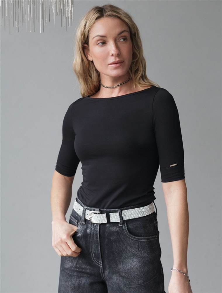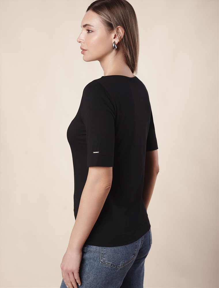 Плотность: 170 Г/м2 Футболка выполнена из премиального хлопка с добавлением эластана.Гладкий трикотаж обеспечит гарантированный комфорт и удобство в использовании. На рукаве металлическая нашивка с логотипом бренда. Издели будет хорошо сочетаться с любыми низами, жилетками и кардиганами, став выгодной инвестицией в базовый гардероб.