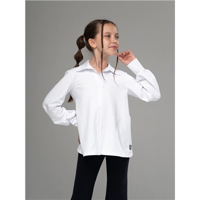 Описание и параметрыСтильная блуза-рубашка из кулирки белого цвета для девочки свободного силуэта с длинными рукавами и отложным воротником. Спинка с двойной кокеткой. Низ рукава на манжетах с изящной сборкой. Изделие выполнено из трикотажа премиального качества - ПЕНЬЕ, с содержанием хлопка более 95%