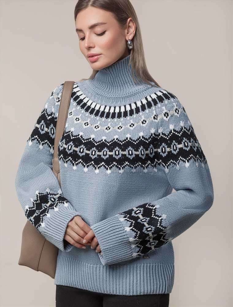 Джемпер фактурной вязки выполнен из хлопковой пряжи с добавлением акрила. Уютная модель в скандинавском стиле внесет эстетику зимнего загородного отдыха в любой гардероб. Мягкая пряжа очень приятная к телу хорошо поддерживает тепло при этом не перегревая. Отлично держит форму даже после множества стирок. Свободный силуэт позволяет носить под низ футболки, лонгсливы и топы. Изделие дополнено металлическим логотипом бренда.