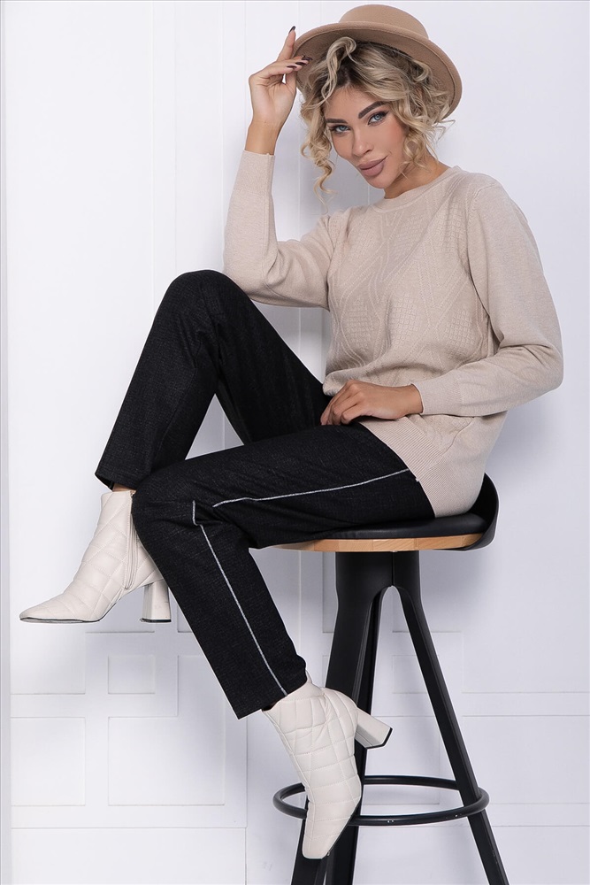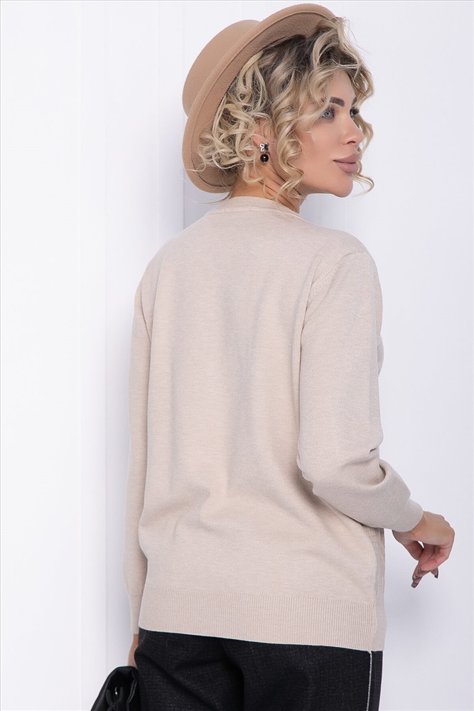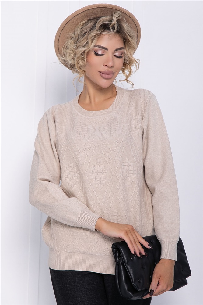 Декоративные элементы: передняя часть джемпера выполнена вязкой в форме ромбов.