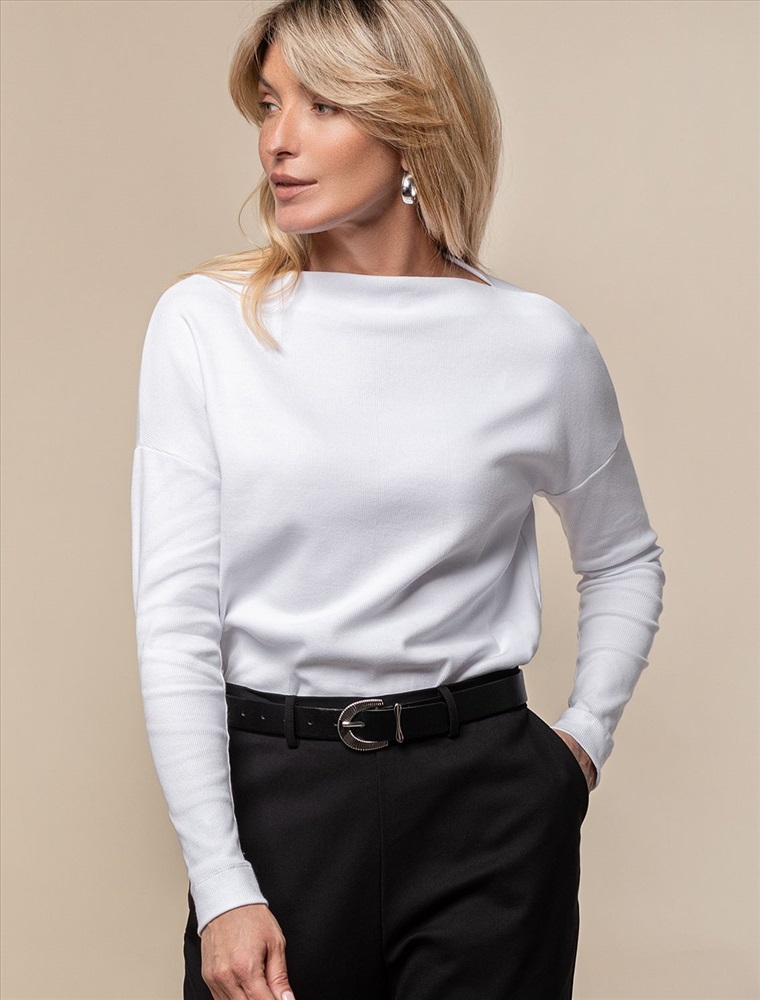 Параметры модели на первом фото: Рост 170, бюст 89, талия 63, бедра 92 Джемпер со спущенной линией плеча выполнен из фактурного трикотажа в рубчик. Модель идеально сидит по фигуре не сковывая движения. Хлопковый трикотаж поддерживает оптимальную температуру тела, поэтому в изделии будет комфортно в течении всего дня. Наличие эластана в составе гарантирует формоустойчивости. Базовая модель впишется в любой гардероб. Комментарии к товару