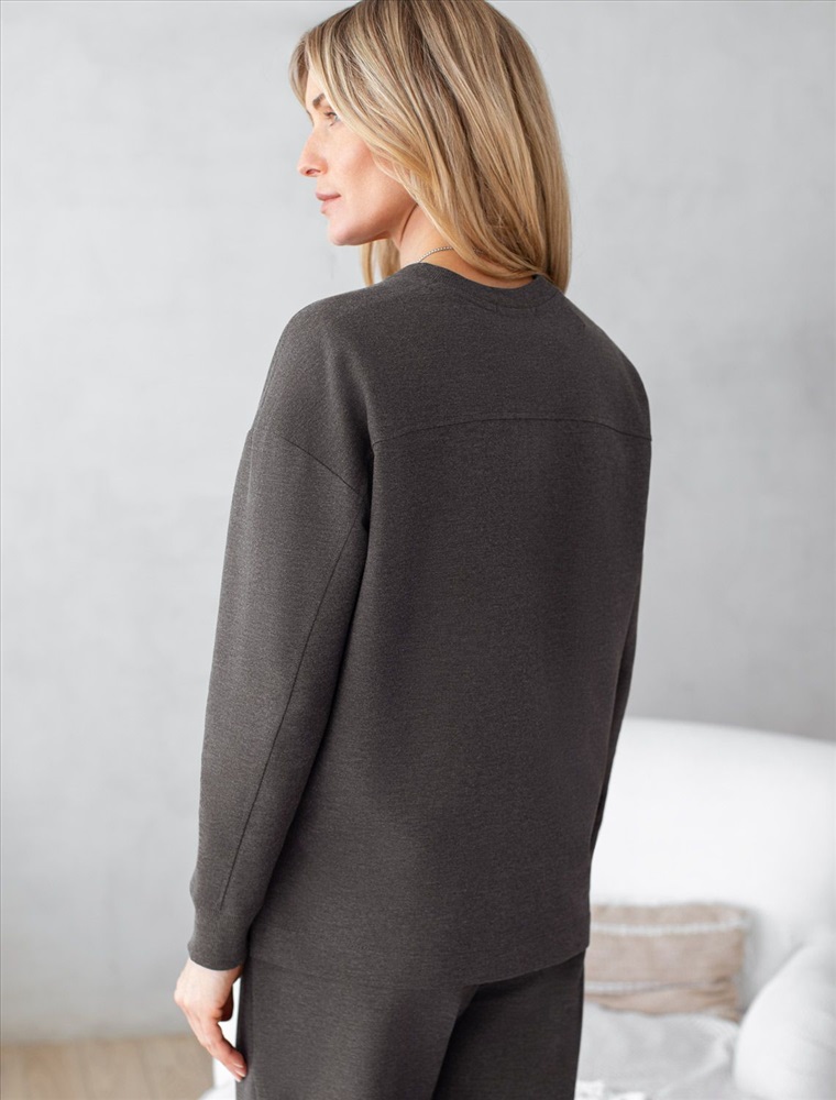 Джемпер со спущенной линией плеча выполнен из премиального хлопка. Модель дополнена разрезами по бокам. Мягкий эластичный хлопковый трикотаж гарантирует исключительный комфорт и уют дома. Идеально сочетается в костюме с шортами D48.006, брюками D44.120 и леггинсами D44.131