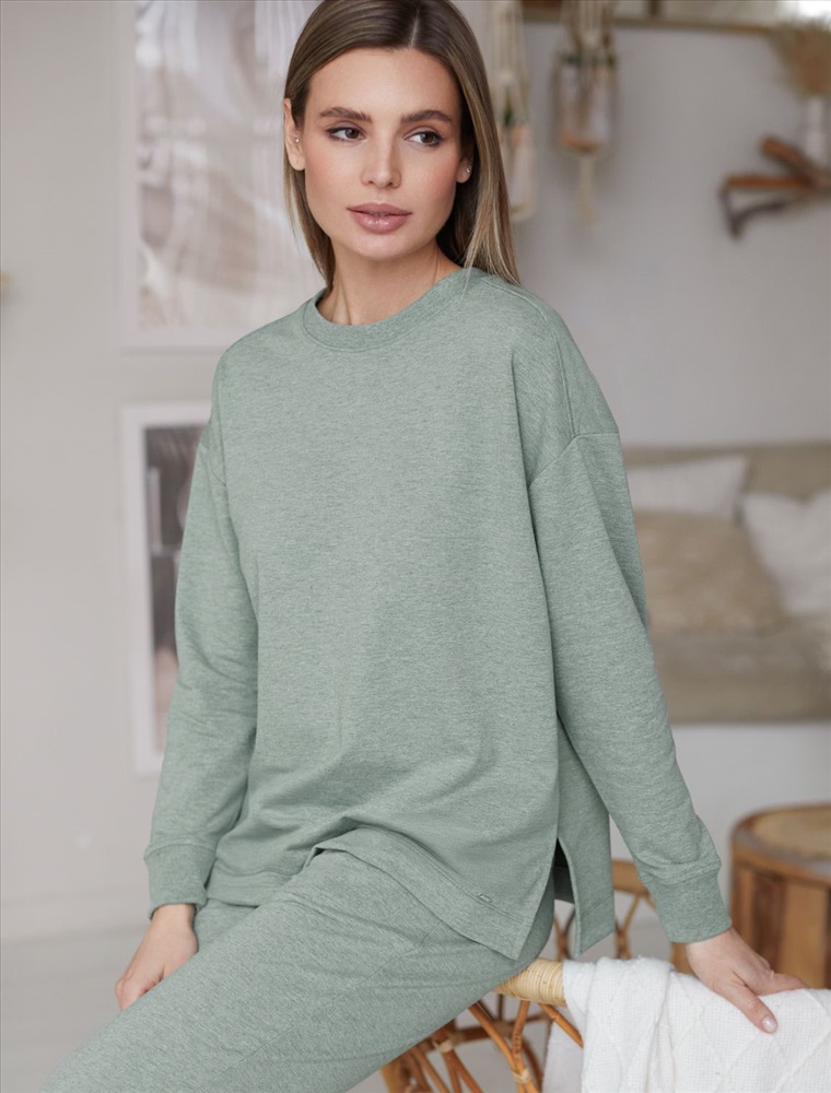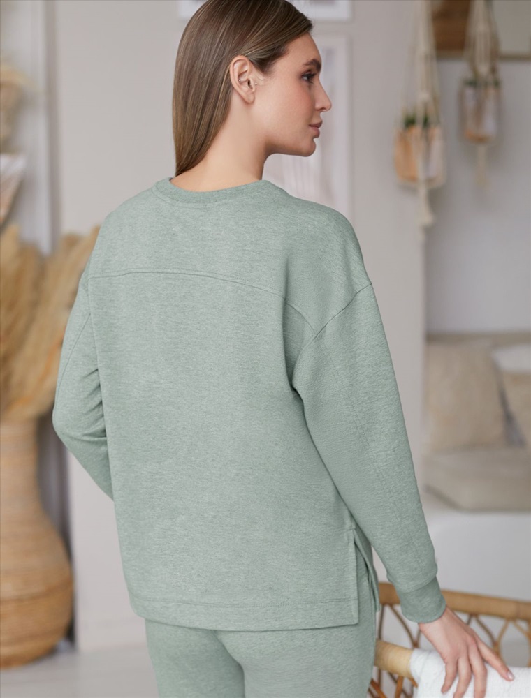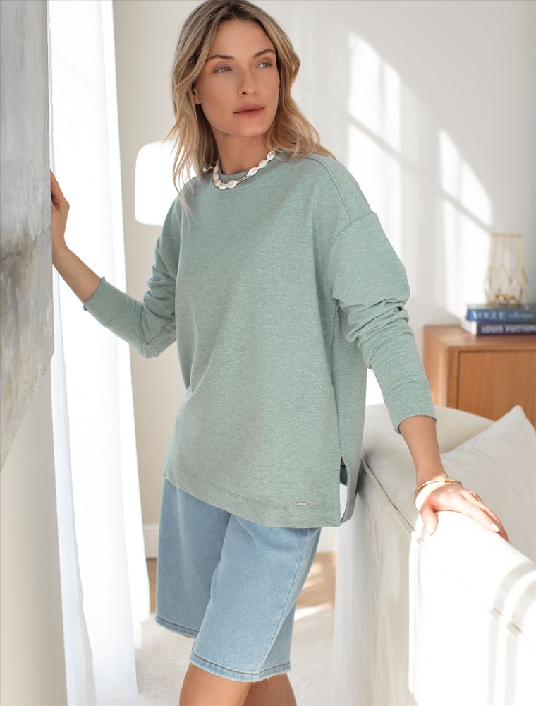 Параметры модели на первом фото: Рост 170, бюст 89, талия 63, бедра 92 Джемпер со спущенной линией плеча выполнен из премиального хлопка. Модель дополнена разрезами по бокам. Мягкий эластичный хлопковый трикотаж гарантирует исключительный комфорт и уют дома. Идеально сочетается в костюме с шортами D48.006, брюками D44.120 и леггинсами D44.131
