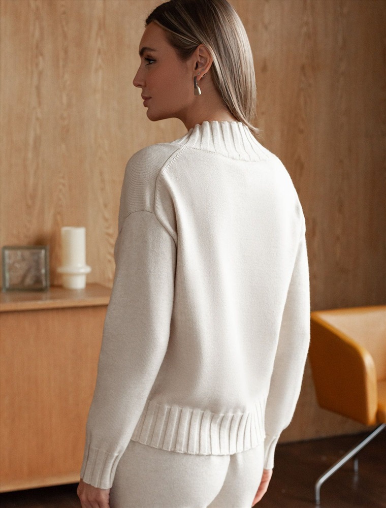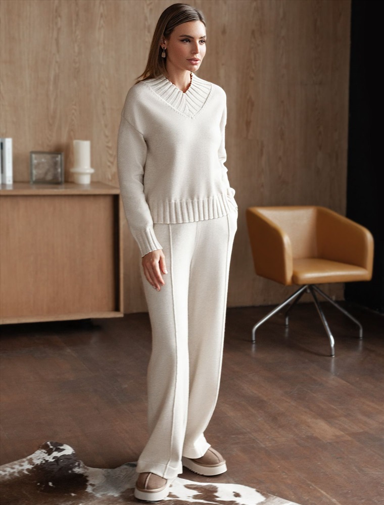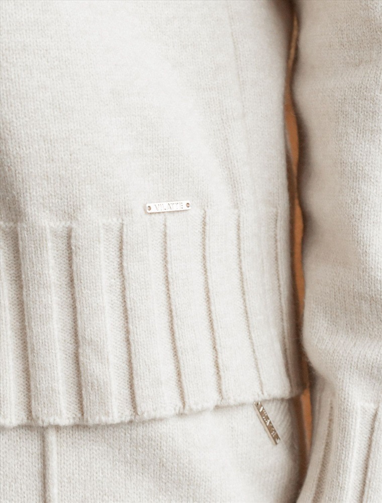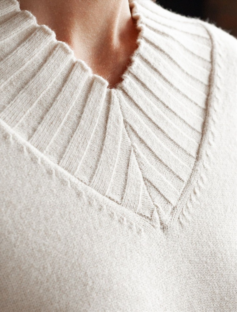 Плотность: 7 GG Размер товара на первом фото: 42 Джемпер выполнен из мягкой пряжи с кашемиром. Изделие дополнено высоким V-вырезом с широкой рибаной. Мягкая пряжа очень приятная к телу, поддержит комфорт на протяжении всего дня, при этом не перегревая. Сочетается в костюме с брюками D38.013, D38.012 и юбкой D36.016 Комментарии к товару