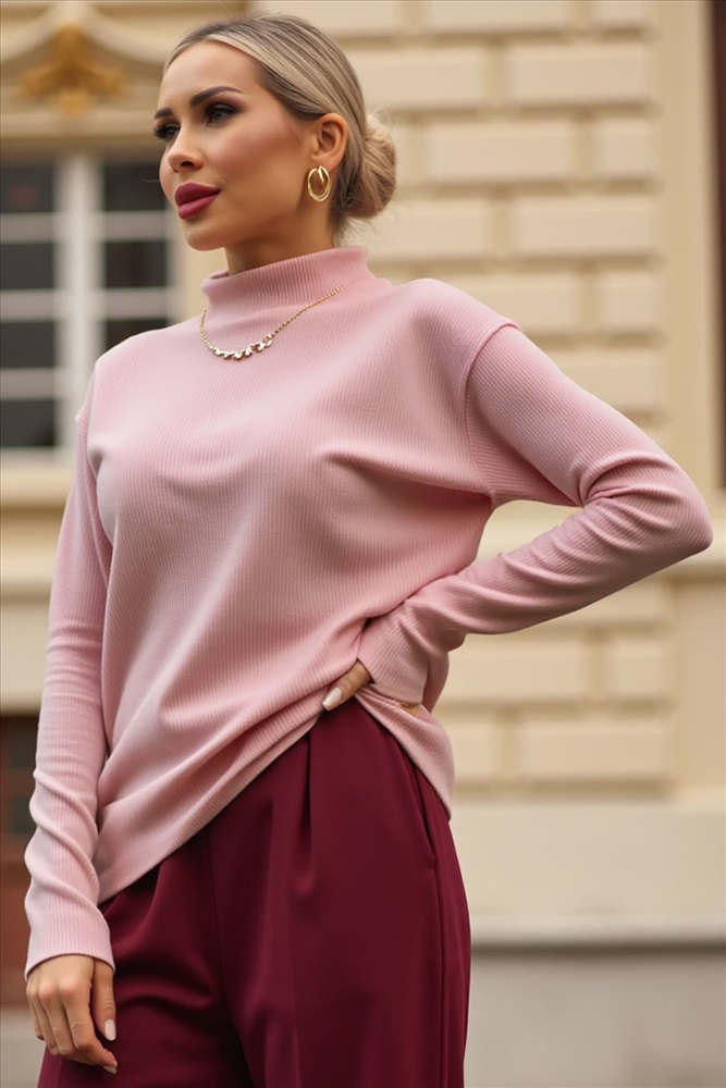 Джемпер в элегантном стиле — это отличный выбор для тех, кто ценит изысканность! Он изготовлен из мягкого трикотажного полотна «лапша», что делает его идеальным дополнением к строгим деловым костюмам. Благодаря нежному оттенку «роза» этот джемпер придаст вам утончённости и свежести.