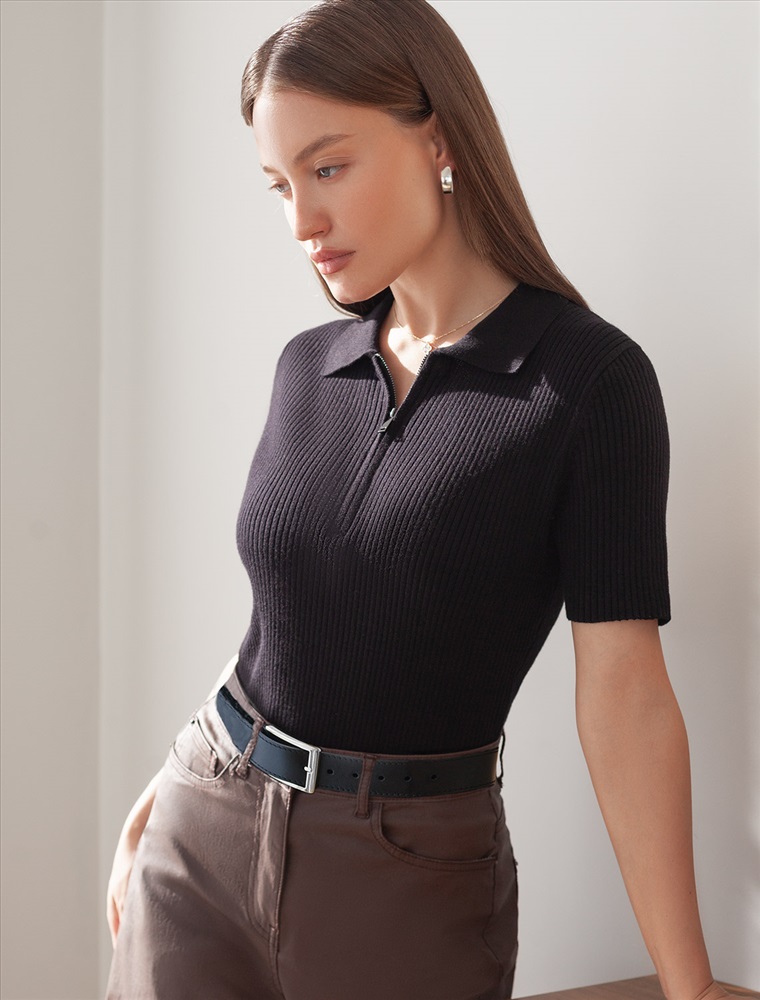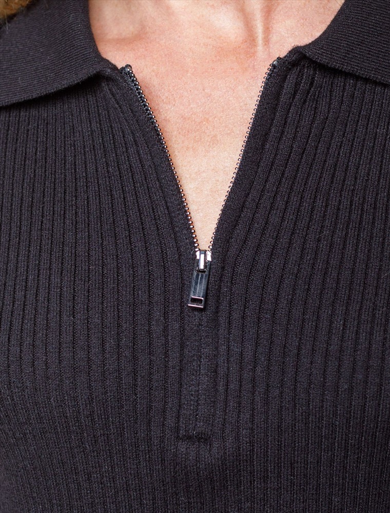 Размер товара на первом фото: 42 Джемпер-поло тонкой вязки выполнен из хлопка с добавлением кашемира. Модель с воротом как у поло дополнена застежкой на молнию и металлическим логотипом бренда. Мягкая и очень приятная пряжа в рубчик совершенно не колется, сохраняет тепло при этом не перегревая, гарантируя безупречный комфорт.