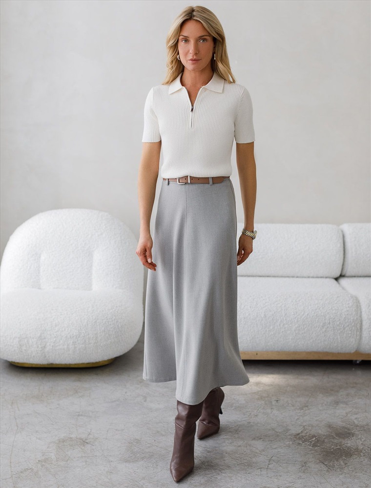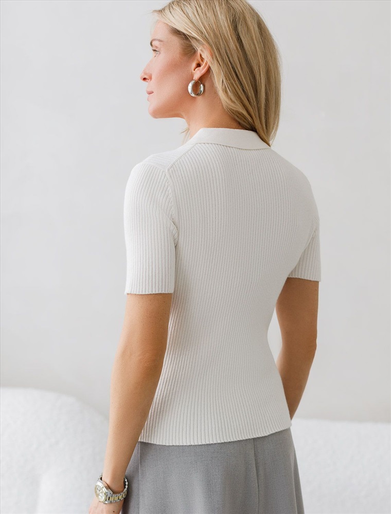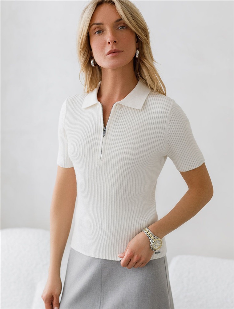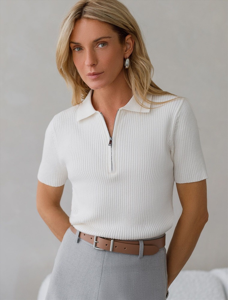 Размер товара на первом фото: 42 Джемпер-поло тонкой вязки выполнен из хлопка с добавлением кашемира. Модель с воротом как у поло дополнена застежкой на молнию и металлическим логотипом бренда. Мягкая и очень приятная пряжа в рубчик совершенно не колется, сохраняет тепло при этом не перегревая, гарантируя безупречный комфорт.