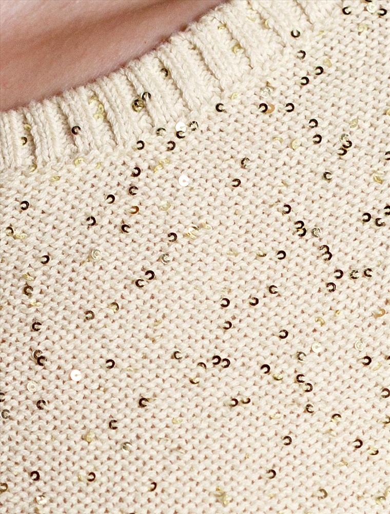 Плотность: 5 GG Легкий джемпер бежевого цвета с цельнокроенным коротким рукавом выполнен из хлопковой пряжи с вкраплением сияющих пайеток, что придает особую изысканность. Стильный джемпер связан изнанкой, пряжа отличается легкостью и приятной текстурой, совершенно не колется, обеспечивает комфорт даже при длительном использовании, а натуральные волокна поддерживают оптимальный температурный баланс. Свободный крой и цельнокроенный рукав создают расслабленный, но аккуратный образ. Нарядный джемпер подойдет девушкам и женщинам больших размеров, в нем вы будете чувствовать себя уверенно и свободно в любой ситуации. Мерцающий эффект пайеток добавляет образу выразительности и индивидуальности. Мерцающее полотно добавляет особого шарма вашему образу, делая его уместным как на праздник, так и для повседневного выхода. Новый год, вечеринка или любое другое мероприятие пройдут ярко — сияющие пайетки создают ощущение праздника в каждом движении. Для спокойного повседневного аутфита добавьте к этому эффектному джемперу спокойный низ, близкий по цвету, без дополнительных элементов декора. Комментарии к товару