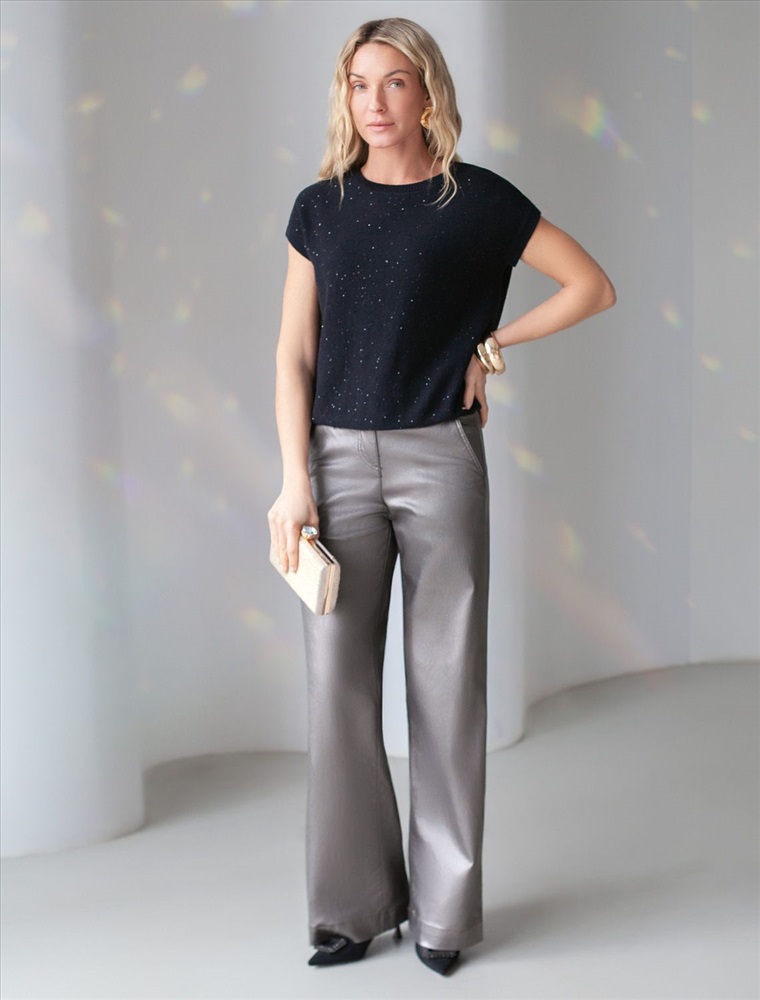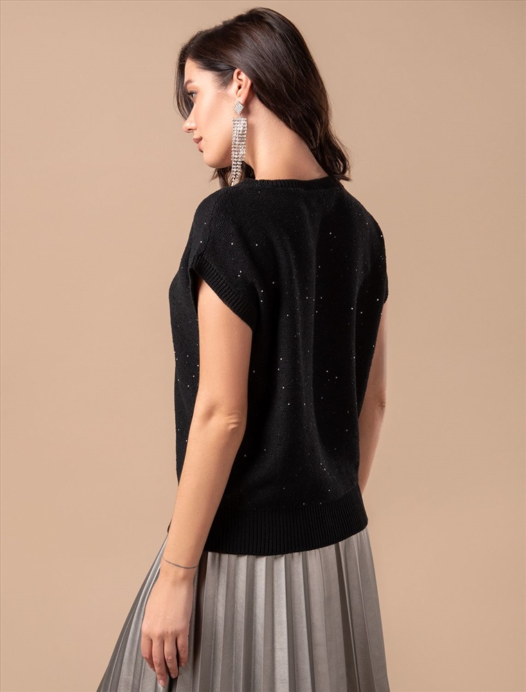 Плотность: 5 GG Легкий джемпер черного цвета с цельнокроеным коротким рукавом выполнен из хлопковой пряжи с вкраплением сияющих пайеток, что придает особую изысканность. Стильный джемпер связан изнанкой, пряжа отличается легкостью и приятной текстурой, совершенно не колется, обеспечивает комфорт даже при длительном использовании, а натуральные волокна поддерживают оптимальный температурный баланс. Свободный крой с эластичной манжетой по низу и цельнокроенный рукав создают расслабленный, но аккуратный образ. Нарядный джемпер подойдет девушкам и женщинам больших размеров, в нем вы будете чувствовать себя уверенно и свободно в любой ситуации. Мерцающий эффект пайеток добавляет образу выразительности и индивудуальности. Мерцающее полотно добавляет особого шарма вашему образу, делая его уместным как на праздник, так и для повседневного выхода. Новый год, вечеринка или любое другое мероприятие пройдут ярко — сияющие пайетки создают ощущение праздника в каждом движении. Для спокойного повседневного аутфита добавьте к этому эффектному джемперу спокойный низ, близкий по цвету, без дополнительных элементов декора. Комментарии к товару