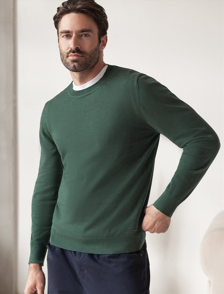 Плотность: 12 GG Джемпер выполнен из премиальной гладкой хлопковой пряжи с добавлением нейлона. Лаконичная модель с круглым воротом дополнена вышитым логотипом бренда и классическим металлическим лого. Изделие гармонично впишется в образ как с брюками, так и с джинсами. Хлопковая пряжа хорошо сохраняет тепло при этом, не перегревая тело. Нейлон в составе способствует формоустойчивости.