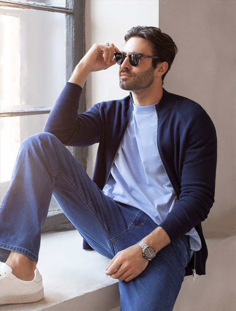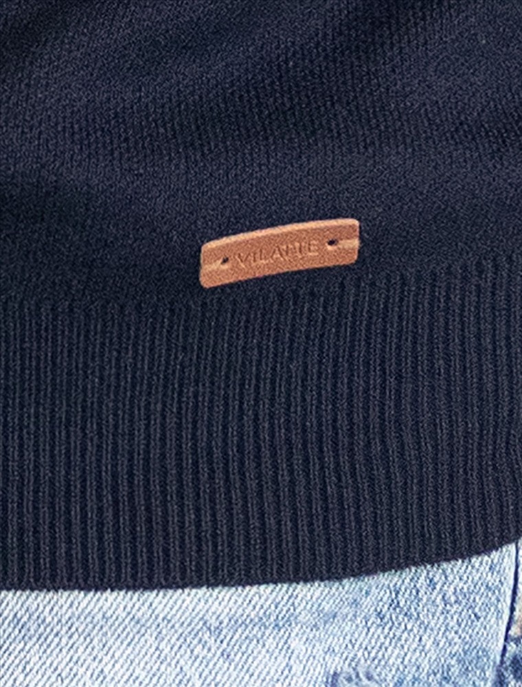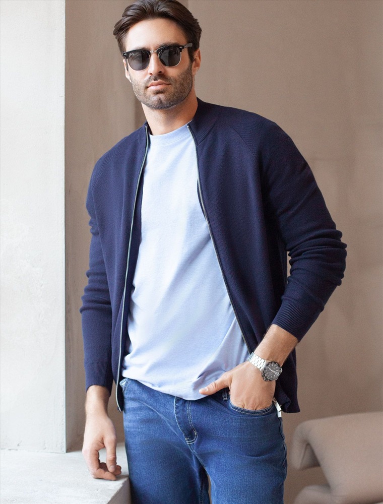 Параметры модели на первом фото: Рост 190, бюст 108, талия 87, бедра 104 Темно-синий джемпер с длинными рукавами поддержит образы любой палитры и сложности. За многофункциональность отвечают лаконичный крой и застежка на молнию. Изделие связано из премиального хлопка с добавлением акрила, которые не дадут замерзнуть в прохладный день на улице, но при этом не перегревает в помещении. Комментарии к товару