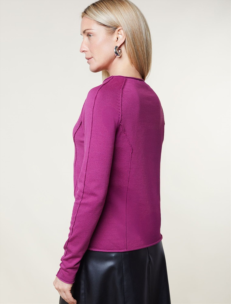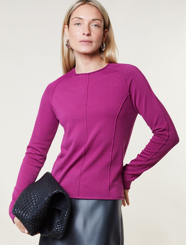 Размер товара на первом фото: 42 Джемпер тонкой вязки выполнен из мягкой хлопковой пряжи. Модель с декоративными швами идеально сидит по фигуре подчеркиваяч изгибы тела. Подходит для любой фигуры и впишется в любой гардероб. Изделие дополнено металлическим логотипом бренда.