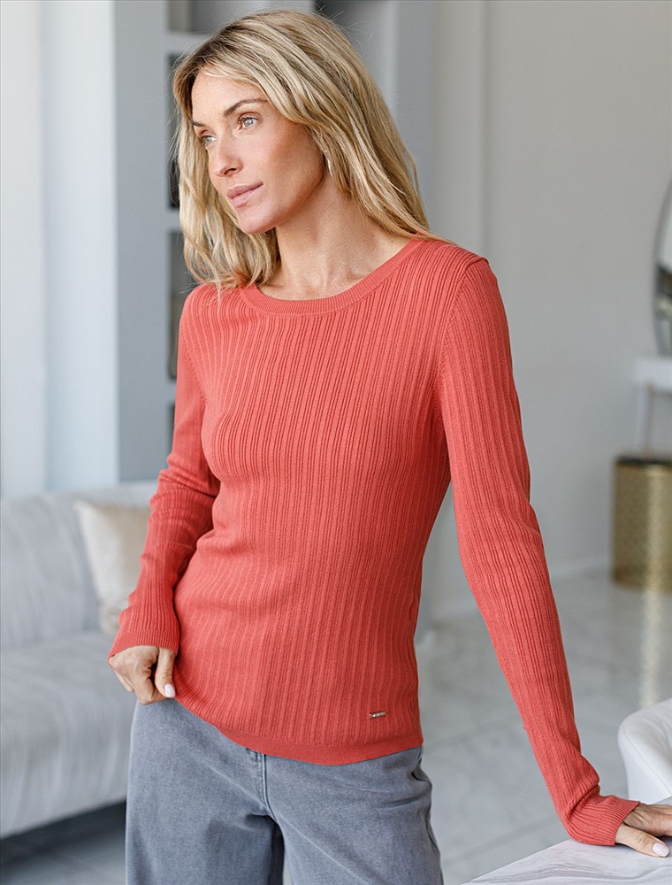 Размер товара на первом фото: 42 Джемпер тонкой вязки выполнен из вискозы с нейлоном. Модель прилегающего кроя безупречно сидит по фигуре не сковывая движений. Мягкая, приятная к телу пряжа гарантирует комфорт и формоустойчивость в течение долгого времени. Изделие дополнено фирменным металлическим логотипом бренда