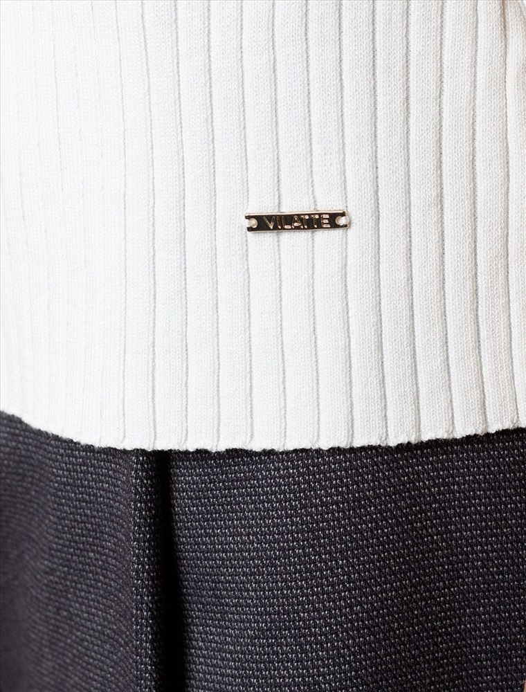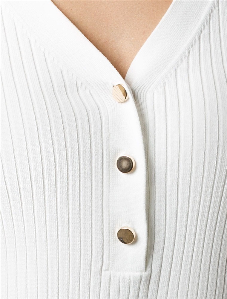 Джемпер тонкой вязки из вискозы с нейлоном. Модель с V- вырезом прилегающего силуэта дополнена золотистыми пуговицами. Мягкая очень приятная к коже пряжа хорошо держит форму и гарантирует комфорт во время носки в течение всего дня. Изделие дополнено фирменным металлическим логотипом бренда.
