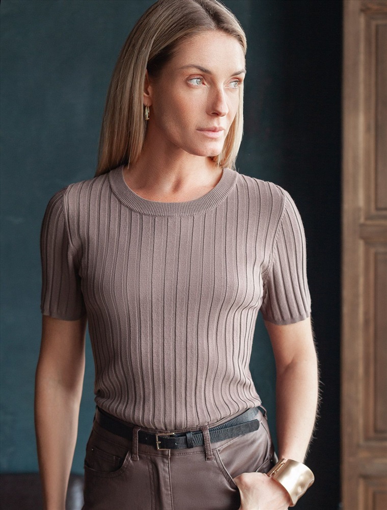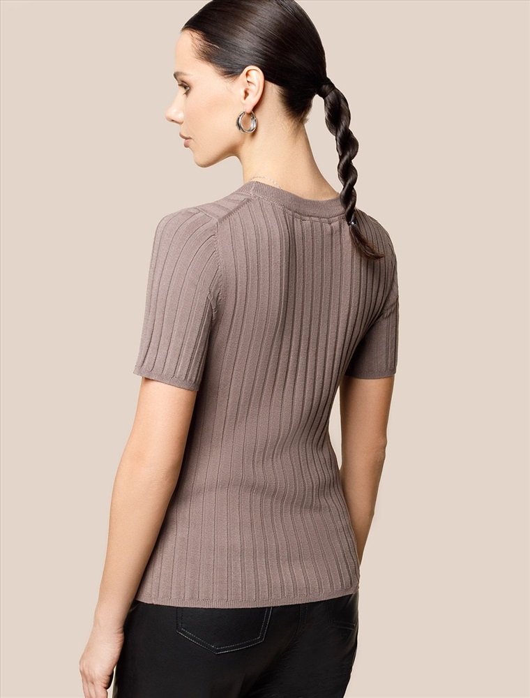 Джемпер тонкой вязки из вискозы с нейлоном. Модель с круглым вырезом прилегающего силуэта. Мягкая очень приятная к коже пряжа хорошо держит форму и гарантирует комфорт во время носки в течение всего дня. Изделие дополнено фирменным металлическим логотипом бренда.