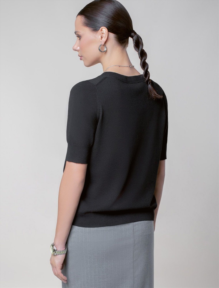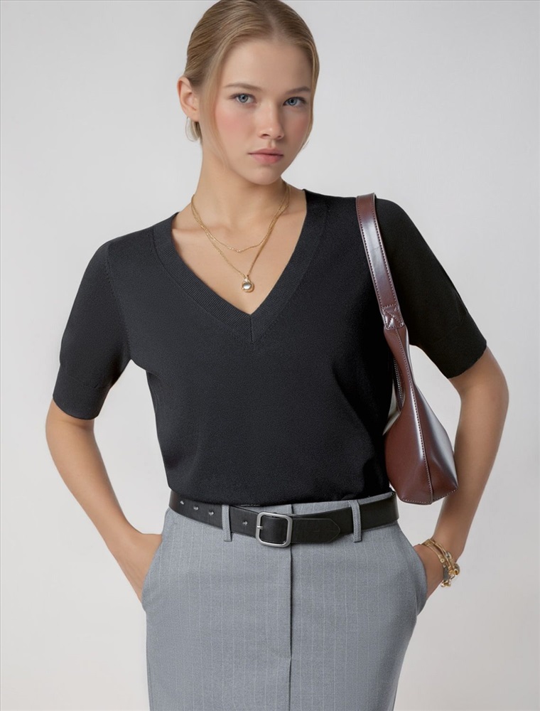 Размер товара на первом фото: 42 Джемпер тонкой вязки выполнен из вискозы с нейлоном. Модель с V-вырезом свободного силуэта. Мягкая очень приятная к коже пряжа не колется, хорошо держит форму и гарантирует комфорт во время носки в течение всего дня. Изделие дополнено фирменным металлическим логотипом бренда.