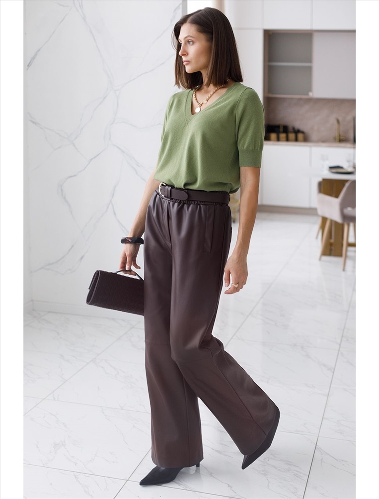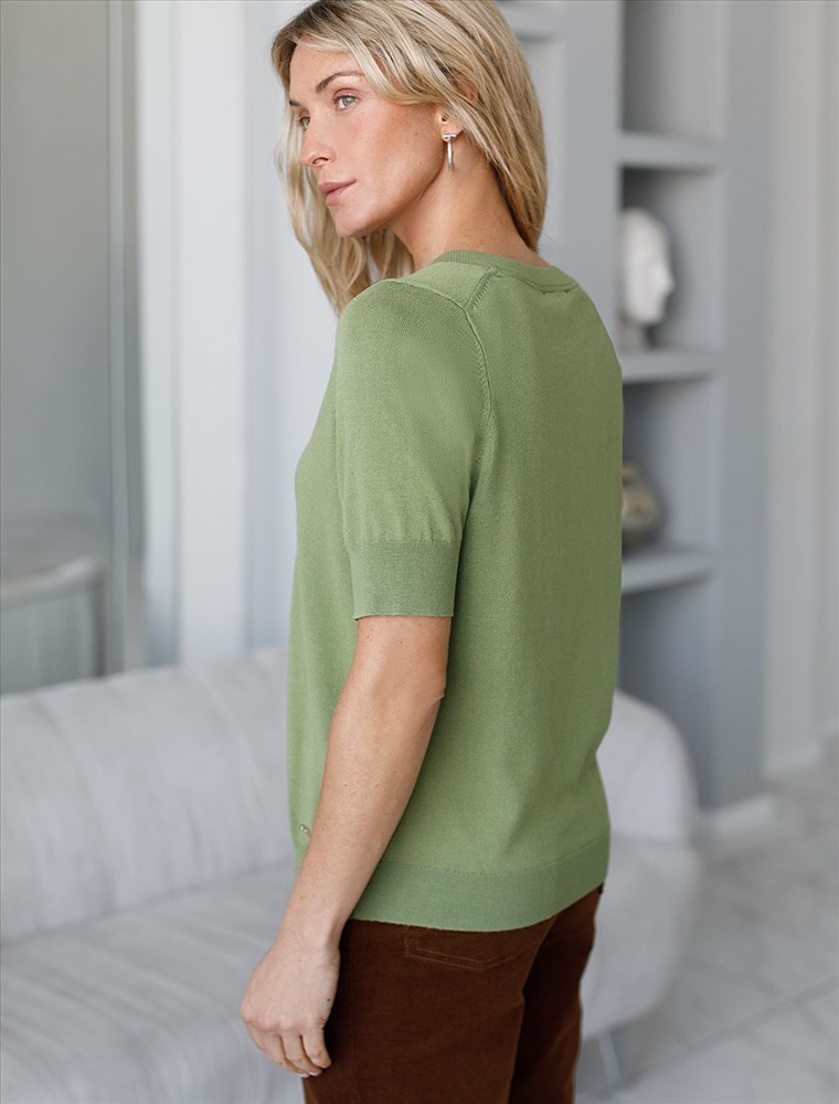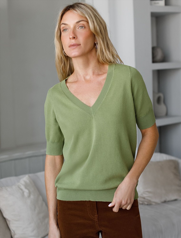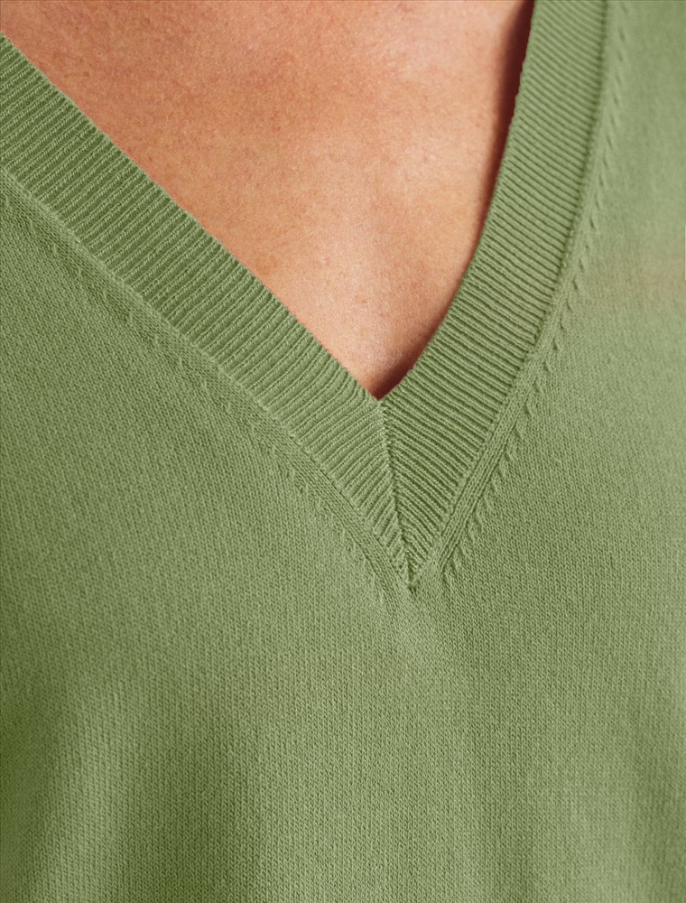 Джемпер тонкой вязки выполнен из вискозы с нейлоном. Модель с V-вырезом свободного силуэта. Мягкая очень приятная к коже пряжа не колется, хорошо держит форму и гарантирует комфорт во время носки в течение всего дня. Изделие дополнено фирменным металлическим логотипом бренда.