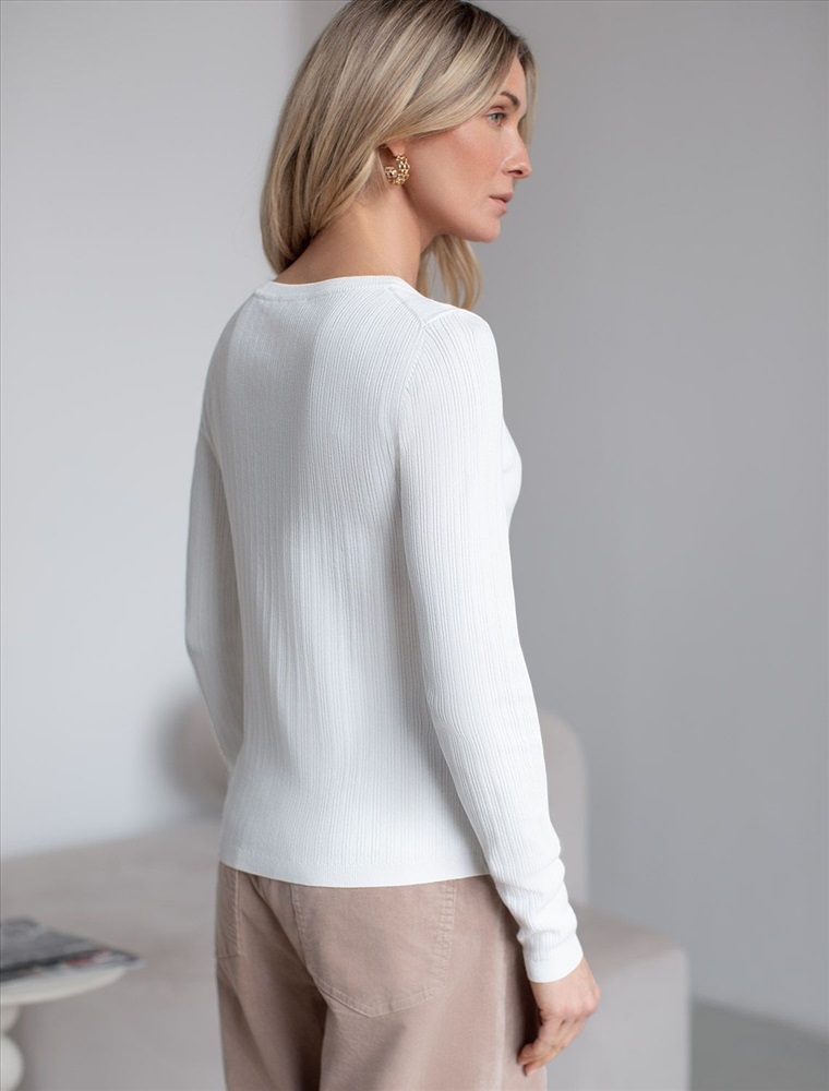 Джемпер тонкой вязки выполнен из вискозы с нейлоном. Модель прилегающего кроя безупречно сидит по фигуре не сковывая движений. Мягкая, приятная к телу пряжа гарантирует комфорт и формоустойчивость в течение долгого времени. Изделие дополнено фирменным металлическим логотипом бренда