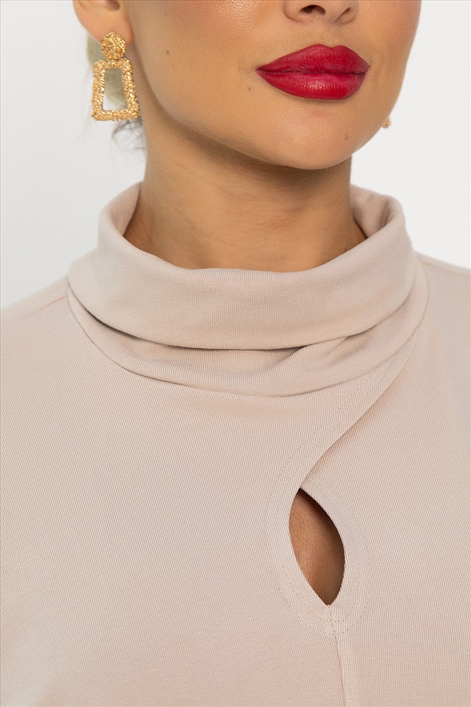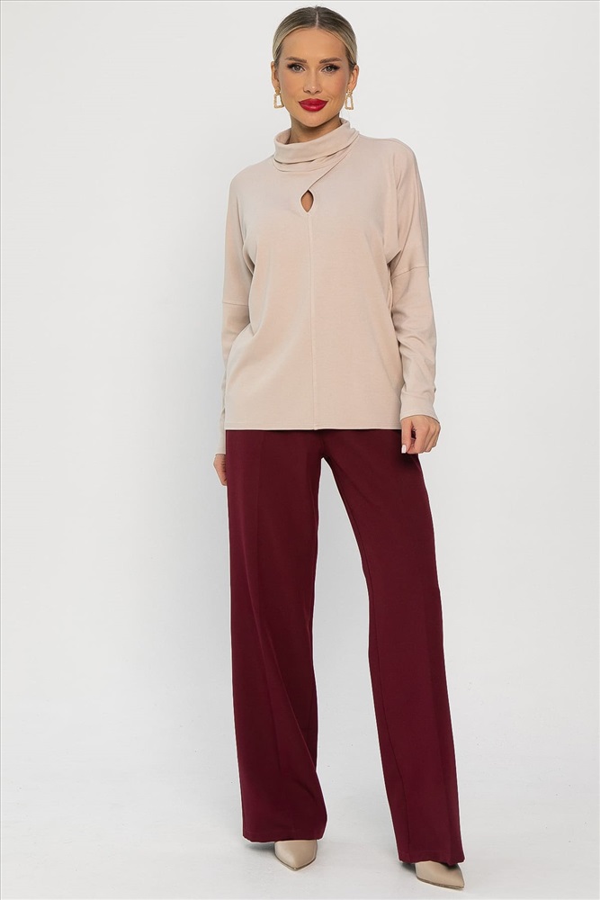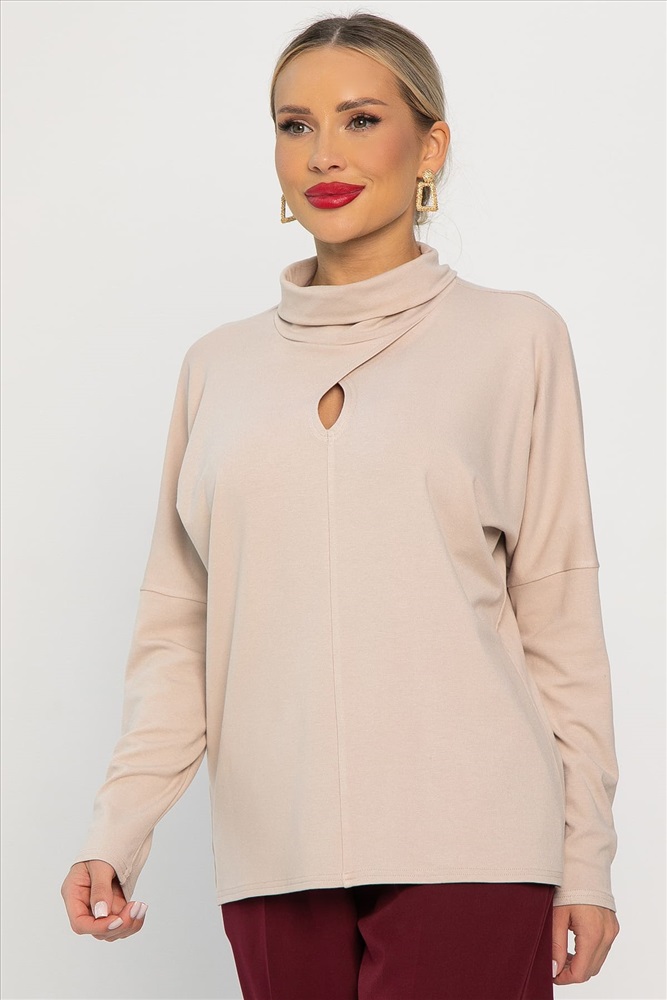 Разнообразьте свой гардероб стильным джемпером, который станет универсальным элементом вашего образа. Изготовленная из мягкого вязаного трикотажа, она обеспечит вам комфорт на протяжении всего дня. Джемпер имеет спущенные рукава и горловину в форме хомута. Каплевидный вырез привлекает внимание, придавая образу изысканности. Эта модель станет основой для создания разнообразных стильных образов. Она идеально подходит для прохладных вечеров и осенних прогулок, и непременно займёт почётное место в вашем гардеробе.
