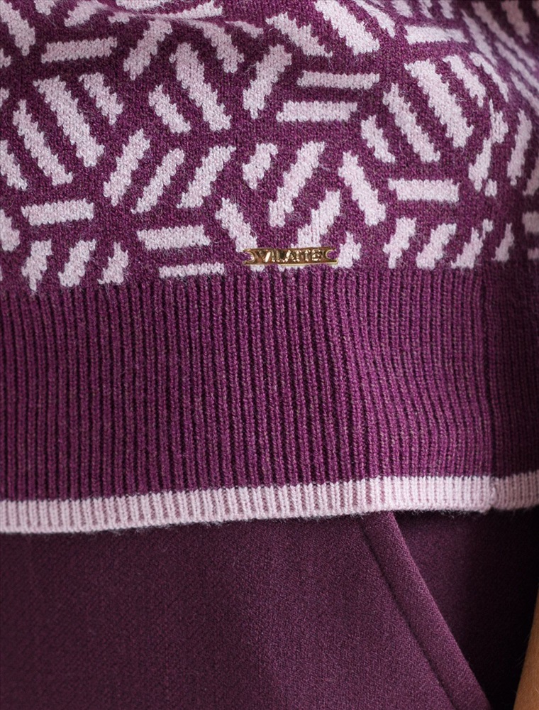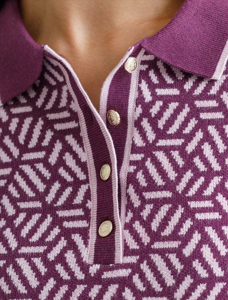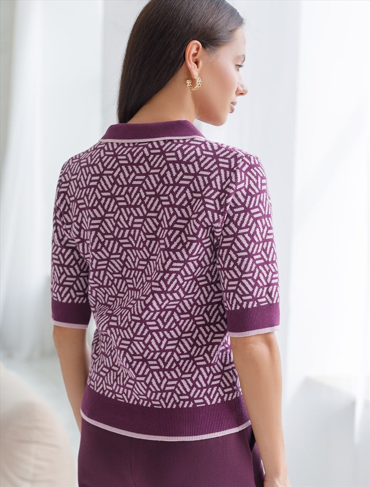Плотность: 12 GG Параметры модели на первом фото: Рост 172, бюст 88, талия 64, бедра 88 Джемпер жаккардовой вязки выполнено из нежной пряжи на основе вискозы с добавлением кашемира. Модель прямого силуэта с застежкой планкой как у поло. Фигурные золотистые пуговицы вносят изысканности и роскоши. Изделие приятно ощущается на теле и поддерживает комфортный микроклимат. Сочетается в комплекте total-look с жакетом D31.150 Комментарии к товару