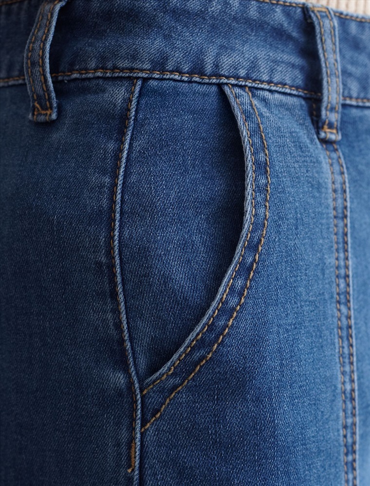 Эффектная юбка миди А силуэта выполнена из эластичного денима, что обеспечивает комфорт и легкость движений на каждый день. Невероятно женственная юбка глубокого синего цвета с декоративными плоскими швами по всей длине визуально вытягивает фигуру, два боковых шва расположены под наклоном, что еще больше стройнит силуэт и подчеркивает бедра, создавая гармоничный силуэт. Декоративные швы придают особый акцент образу, делая его современным и стильным. Благодаря универсальному фасону расклешенная юбка подходит для худеньких девушек. Эластичная ткань легко адаптируется под особенности фигуры, не стесняет движений и держит форму в течение длительной носки, натуральный материал отличается высокой износостойкостью и обеспечивает отличную воздухопроницаемость