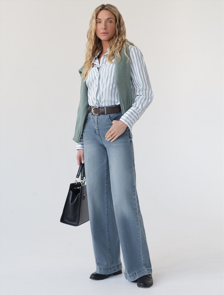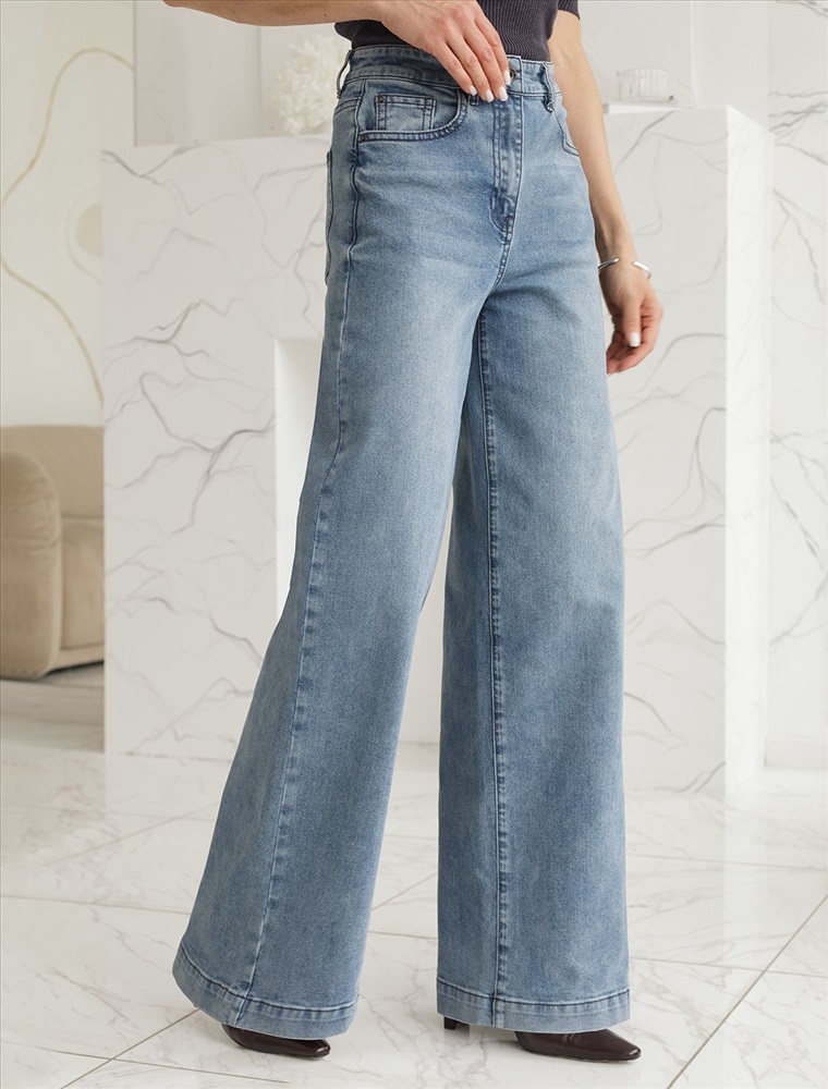 Стильные джинсы трубы синего цвета прямого кроя выполнены из эластичного денима, что делает их особенно удобными для повседневной носки. Декоративная стирка добавляет современный акцент и подчеркивает современный дизайн. Джинсы правильного кроя визуально вытягивают силуэт, благодаря эластану в составе аккуратно садятся на любую фигуру, подчеркивая достоинства, а обеспечивают максимальный комфорт в течение дня, не сковывая движения. Широкая размерная линейка подходит для разных типов фигур: свободные джинсы комфортны как для обладательниц пышных форм, так и для худеньких. Вы сможете подабрать джинсы на низкий или высокий рост. Плотные джинсы идеально держат форму даже при активном движении и не вытягиваются после долгой носки. Качественная фурнитура, практичные карманы и контрастная строчка делают эти джинсы премиальными. Широкий подгиб добавляет актуальности — такой тренд отлично сочетается как с обувью на каблуке, так и на плоском ходу. Благодаря универсальному дизайну джинсы легко комбинируется с разными элементами гардероба: свитерами для прохладной осени или легкими блузками в межсезонье.