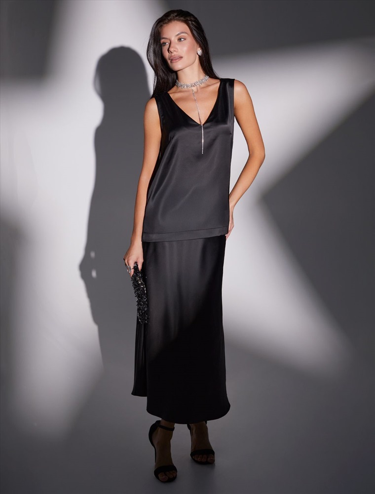Плотность: 190 Г/м2 Изящный нарядный топ черного цвета с V вырезом выполнен из нежного премиального сатина с небольшим добавлением эластана. Свободный крой обеспечивает комфорт, легкость и свободу движений, подчеркивая изысканность образа и женственность силуэта. Особое внимание привлекает мягкий приглушенный блеск материала, придающий топу дорогое и утонченное звучание. Материал отличается приятной текстурой и долговечностью, что гарантирует долгий срок службы топа. Благодаря струящейся, но плотной ткани, топ мягко ложится по фигуре, придавая легкость и подчеркивая достоинства любого типа фигуры. Приятная на ощупь текстура и хорошая воздухопроницаемость - делает повседневный топ отличным выбором для теплого времени года или для носки в помещении. Топ подойдет как на большие размеры, так и на маленькие — универсальность фасона позволяет чувствовать себя уверенно вне зависимости от комплекции. Декольте оформлено аккуратно, создавая эффектный акцент без излишней открытости. Этот топ идеально подойдет для создания стильного ансамбля на вечерние мероприятия или важные события. Благодаря сочетанию элегантности и практичности, такая стильная блузка без рукавов станет незаменимой частью гардероба для женщин, которые ценят качество и комфорт в одежде. Благородный блеск сатина добавляет нотку роскоши в повседневный гардероб и гармонично сочетается с разными стилями одежды: офисными брюками, джинсами или юбками. V-образный вырез визуально вытягивает шею и создает элегантный акцент в зоне декольте, делая образ более открытым и современным. Комментарии к товару