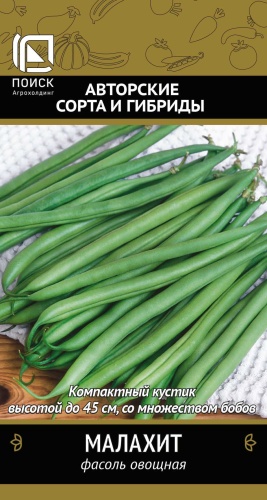 Фасоль овощная Малахит - спаржевая. Компактный кустик, высотой 35 см со множеством бобов. Раннеспелый сорт кустовой формы. Период от всходов до технической спелости 50-55 дней Растение среднеоблиственное, высотой 35-45 см. Прикрепление нижнего боба на высоте 10-13 см. Боб зеленого цвета, длиной 12-14 см, слабоизогнутый, пергаментный слой отсутствует. Семена белого цвета, количество в бобе – 7 шт. Идеальный продукт для консервирования и замораживания. Фасовка 20шт Комментарии к товару