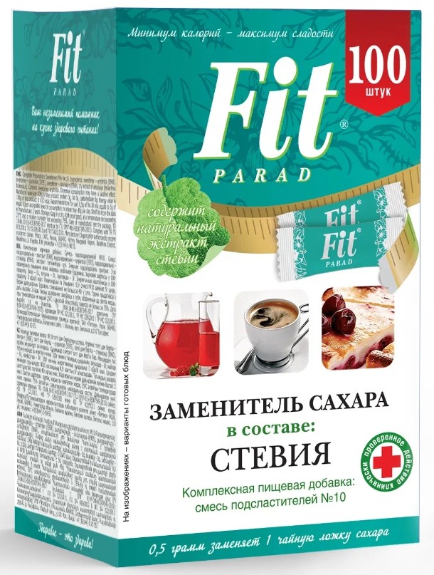 Внешний вида пачки может отличаться от фото, т.к идут изменения на производстве. Пищевая сладкая смесь в 10 раз слаще сахара. В составе смеси «ФитПарад» исключительно природные компоненты, в том числе натуральный сахарозаменитель стевиозид. Продукт может использоваться в качестве подсластителя при приготовлении блюд и напитков. Поскольку смеси «ФитПарад» не содержат обычного сахара, они не повышают его уровень в крови, поэтому подходят для больных диабетом 2 типа. Кроме того, продукт обладает практически нулевой калорийностью, что позволяет его использовать во время диеты людям с лишним весом и спортсменам. Рекомендуемая дозировка – не более 45 г в сутки. 1 пакетик саше «ФитПарад» заменяет 1 ч.л. сахара. Состав: эритрит, сукралоза, стевиозид Комментарии к товару