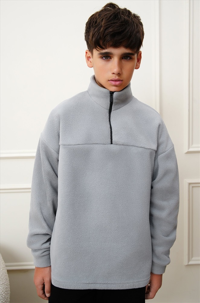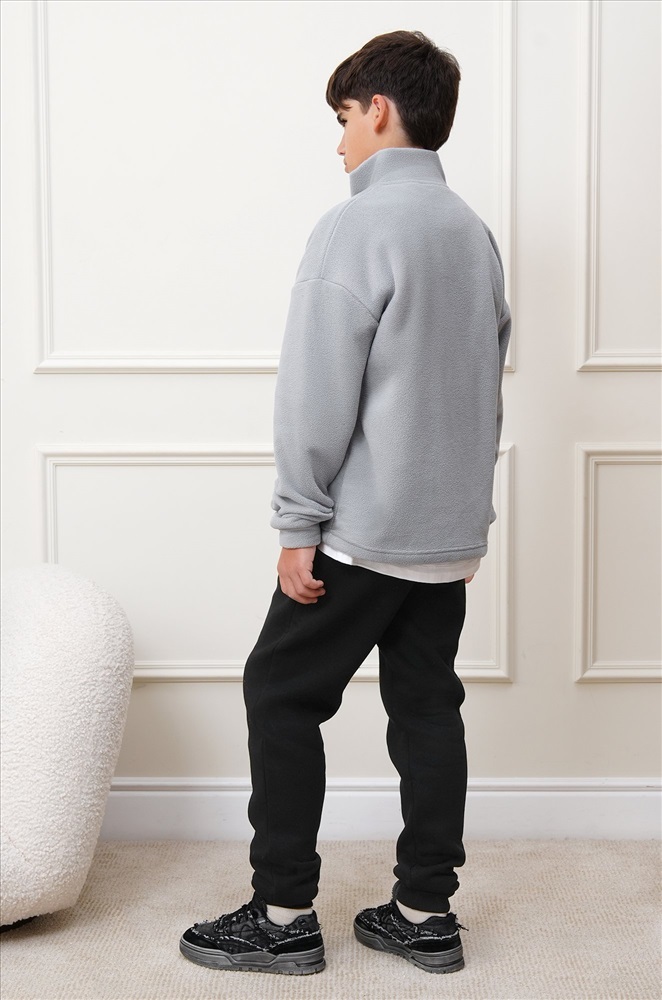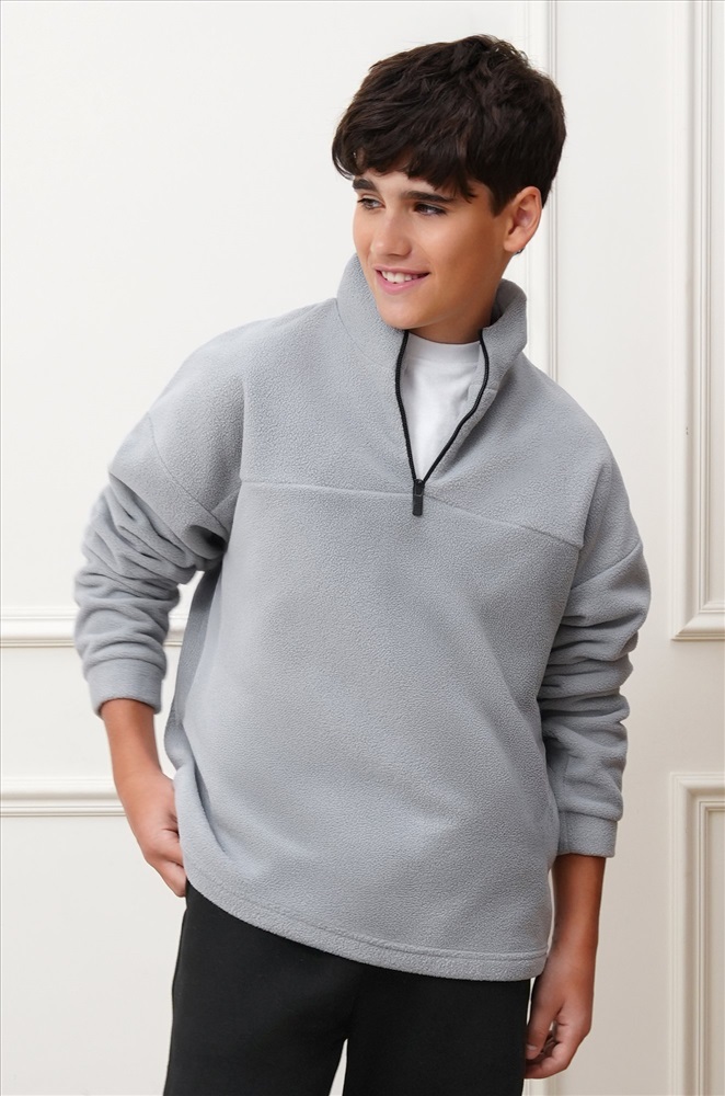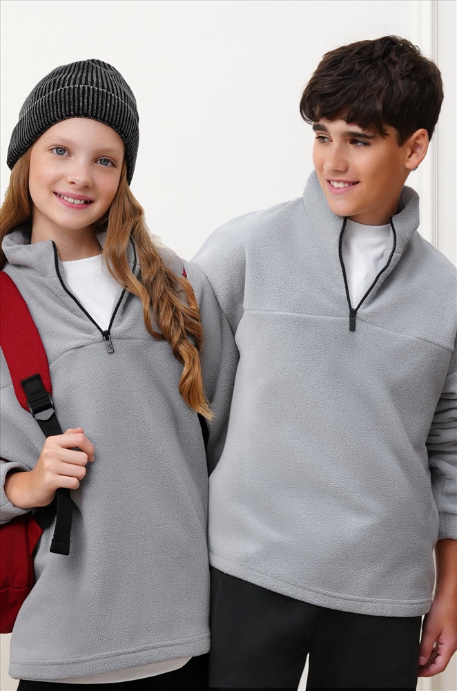 Флисовая толстовка для мальчиков и мальчиков подростков создана для комфорта и тепла в прохладные дни. Свободный крой и воротник на молнии делают детскую олимпийку удобной для школы, прогулок и активного отдыха осенью. Серая толстовка на молнии станет стильным акцентом в повседневном образе.