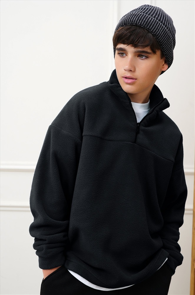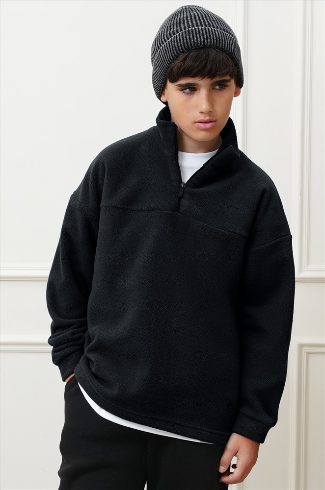 Флисовая толстовка для мальчиков и мальчиков подростков создана для комфорта и тепла в прохладные дни. Свободный крой и воротник на молнии делают детскую олимпийку удобной для школы, прогулок и активного отдыха осенью. Черная толстовка на молнии станет стильным акцентом в повседневном образе.