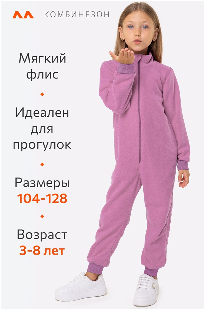 Преимущества: — флисовый комбинезон лавандового цвета — невероятно мягкий и приятный к телу; — теплый комбинезон для девочек и мальчиков отлично сохраняет тепло; — однотонный сиреневый комбинезон выдерживает многочисленные стирки, не теряя форму и цвет; — прямой крой обеспечивает свободу движений и комфорт при активных играх; — застежка на длинной молнии делает переодевание быстрым и удобным; — предусмотрена защита подбородка от контакта с молнией; — манжеты на рукавах и штанинах не дают штанинам и рукавам задираться; — воротник-стойка надежно защищает от ветра и холода; — детский комбинезон можно носить как верхний слой осенью и весной, а зимой использовать как поддеву. Комбинезон идеально подходит для осенних прогулок, детского сада, зимних поездок и путешествий.