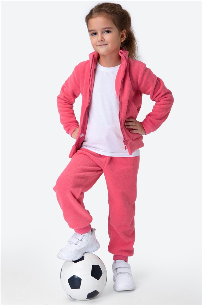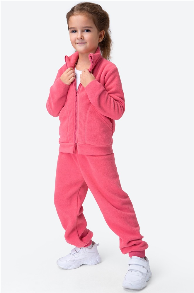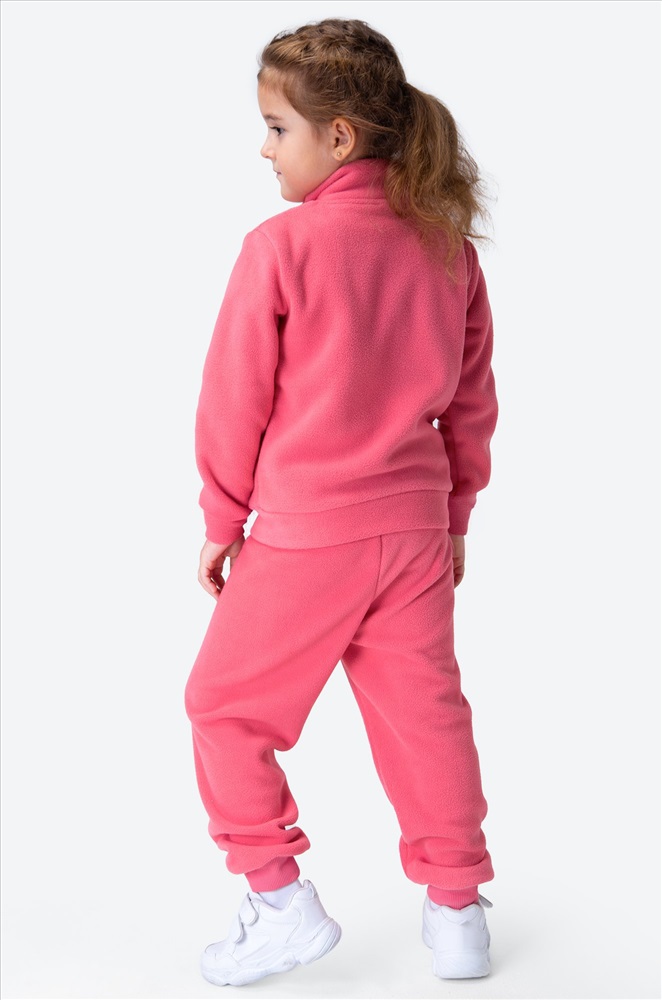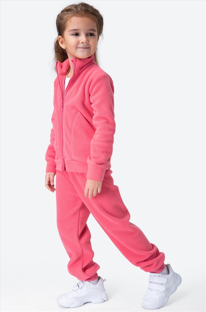 Размерный ряд позволяет подобрать розовый костюм на флисе для детей 4-8 лет.