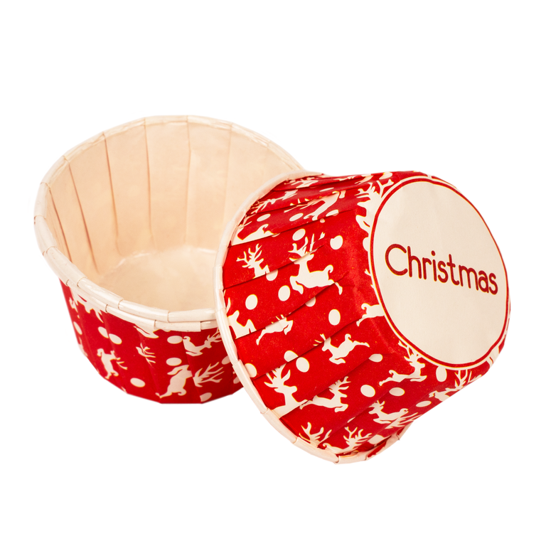 Формы бумажные с ламинацией «Маффин» 50х40 мм (Красные с оленями) 100 шт