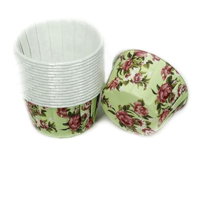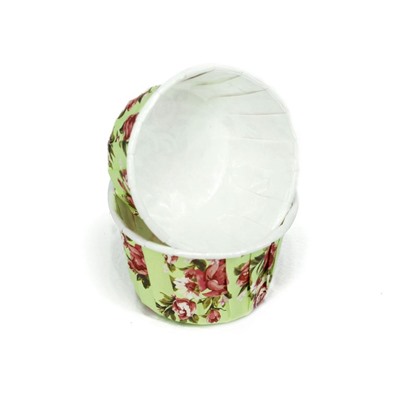 Формы бумажные с ламинацией «Маффин» 50х40 мм (Зеленые с розами) 100 шт