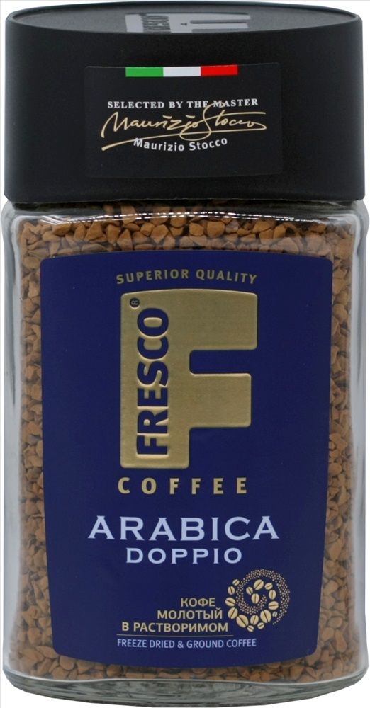 Производство: РОССИЯ Натуральный растворимый кофе с добавлением натурального молотого кофе. Состав: 100% арабика (сорта Arabica Brazil Bourbon, Arabica Brazil Santos).Doppio создан по уникальной технологии производства растворимого кофе, при котором молотый жареный кофе становится неотъемлемой частью каждого кристалла сублимированного кофе. Насыщенный крепкий вкус и яркий стойкий аромат — уникальные черты FRESCO Arabica Doppio.Крепость — 9, аромат — 10, плотность — 9.