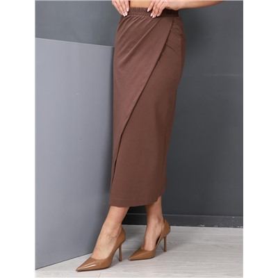 цвет: темно-бежевый Материал: Футер двунитка с лайкрой Трикотаж - Футер двунитка (Хлопок 75%; Полиэстер 20%; Лайкра 5%). Юбка из футера 2нитки прямого силуэта, на запах. Пояс на резинке. Низ изделия обработан швом вподгибку. Длина изделия - миди. Комментарии к товару