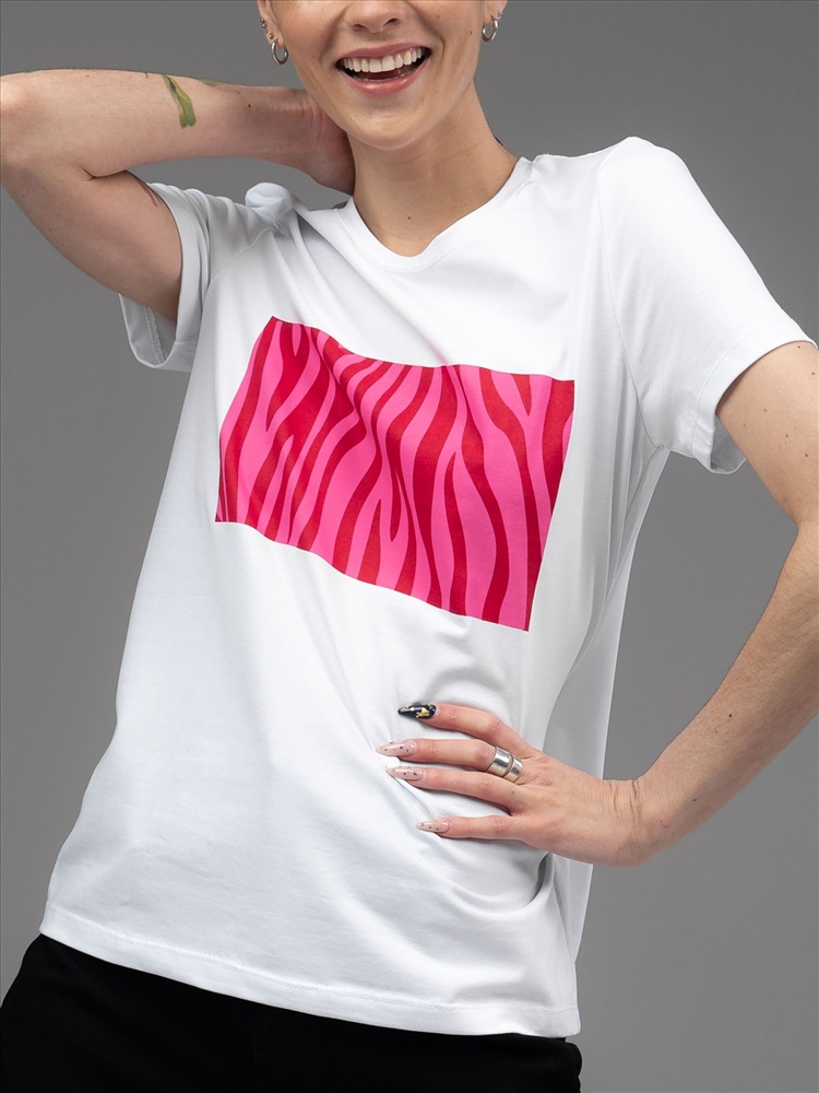 Стильная женская футболка из кулирки белого цвета свободного силуэта с короткими рукавами и круглой горловиной. Изделие выполнено из трикотажа премиального качества - ПЕНЬЕ, с содержанием хлопка более 95%