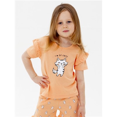 Рисунок: Котик Красивая футболка для девочки, изготовленная из 100% хлопка - кулирки. Модель украшают симпатичный принт на полочке и декоративеные рюши на рукавах. Замеры модели: Размер 104: длина 39 см, ширина 31,5 см; Размер 110: длина 42 см, ширина 33 см; Размер 116: длина 43 см, ширина 34 см.