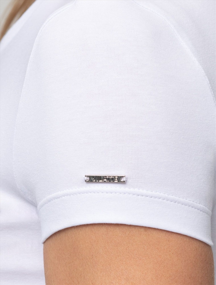 Параметры модели на первом фото: Рост 172, бюст 88, талия 64, бедра 88 Футболка выполнена из премиального хлопка, дополнена металлическим логотипом бренда на рукаве.Модель идеально сидит по фигуре не сковывая движения. Хлопковый трикотаж поддерживает оптимальную температуру тела, поэтому в изделии будет комфортно в течении всего дня. Наличие эластана в составе гарантирует формоустойчивость. Базовая модель впишется в повседневные образы и подойдет для офисного дресс-кода.