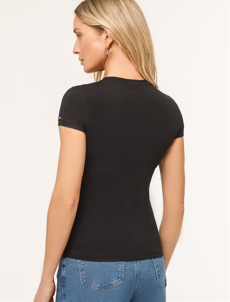 Футболка выполнена из премиального хлопка, дополнена металлическим логотипом бренда на рукаве.Модель идеально сидит по фигуре не сковывая движения. Хлопковый трикотаж поддерживает оптимальную температуру тела, поэтому в изделии будет комфортно в течении всего дня. Наличие эластана в составе гарантирует формоустойчивость. Базовая модель впишется в повседневные образы и подойдет для офисного дресс-кода.
