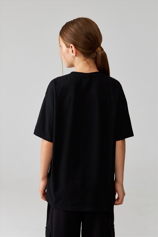 ID товара: 1039078 Состав: 95% Хлопок, 5% Полиуретан Сезон: Весна/Лето Длина: Средняя Фасон: Свободный Рукав: короткие Вырез горловины: Округлый Рисунок: Надпись Декоративные элементы: Принт Основная ткань: Хлопок Стиль: повседневный Страна бренда: Россия Страна производства: Китай Футболка детская для девочек Sanita черный принт Комментарии к товару