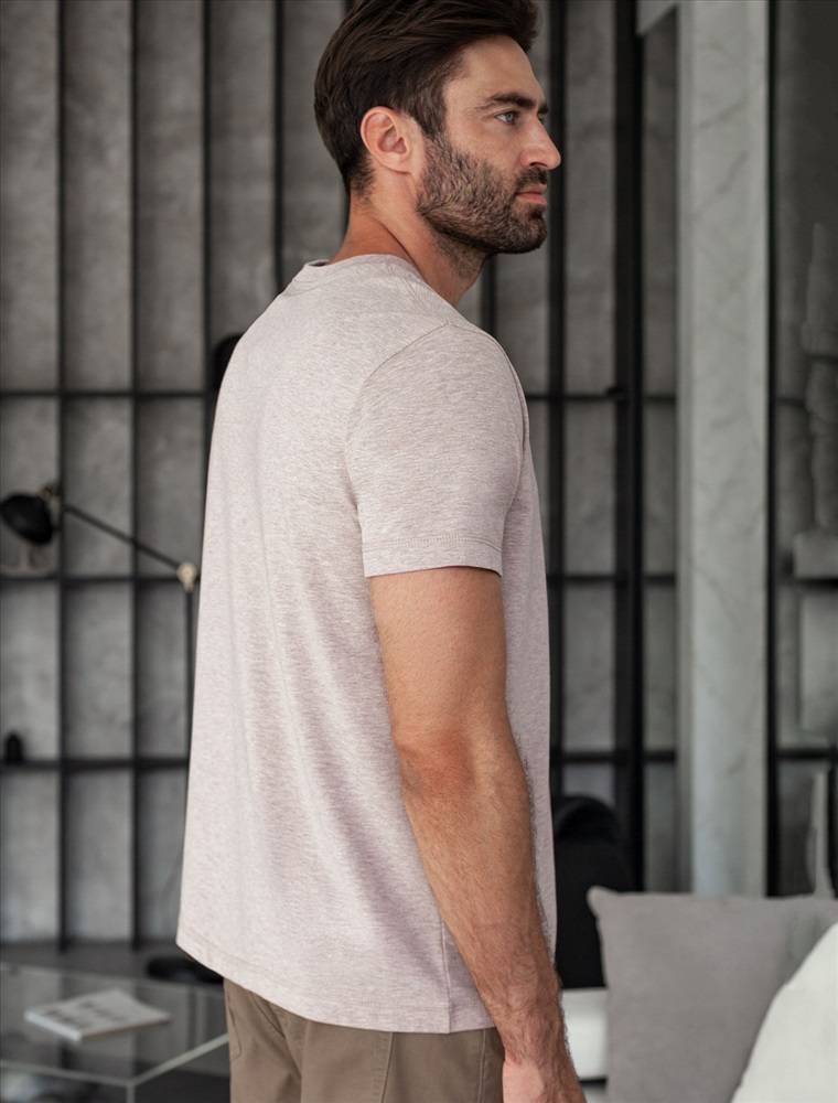 Плотность: 170 Г/м2 Базовая футболка светло-кофейного цвета с эффектом меланж из премиального хлопка с эластаном полуприлегающего кроя станет универсальным решением для любого случая. Прямой крой обеспечивает комфортную посадку на любую фигуру, включая большие размеры, подходит как на низкий, так и на высокий рост. Выполненная из натуральной ткани, она обладает дышащими свойствами, а за счет эластичности сохраняет форму даже после длительного ношения и многочисленных сирок. Однотонная футболка выполнена в минималистичном стиле, дополнена аккуратной вышивкой на груди в виде буквы V в тон изделия, а так нашивкой на рукаве из эко-кожи с логотипом VILATTE. Подходит как классический вариант для работы в офисе под пиджак, так и для повседневной носки или занятий спортом. Мягкая ткань приятна к телу, не вызывает дискомфорта и идеально подходит для дома или летних прогулок благодаря короткому рукаву. Простая и практичная футболка станет базовым элементом вашего гардероба. Она легко сочетается с джинсами, шортами или брюками в спортивном или классическом стиле. Стрейч-ткань поддерживает свободу движений и подчеркивает индивидуальный стиль каждого мужчины. Комментарии к товару