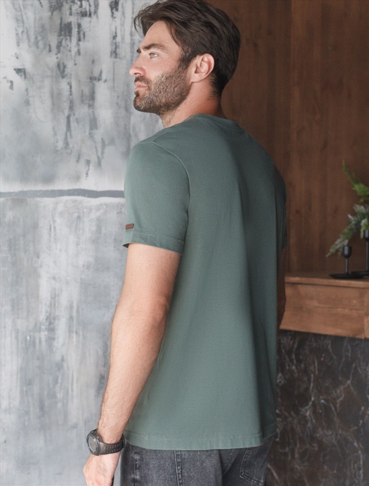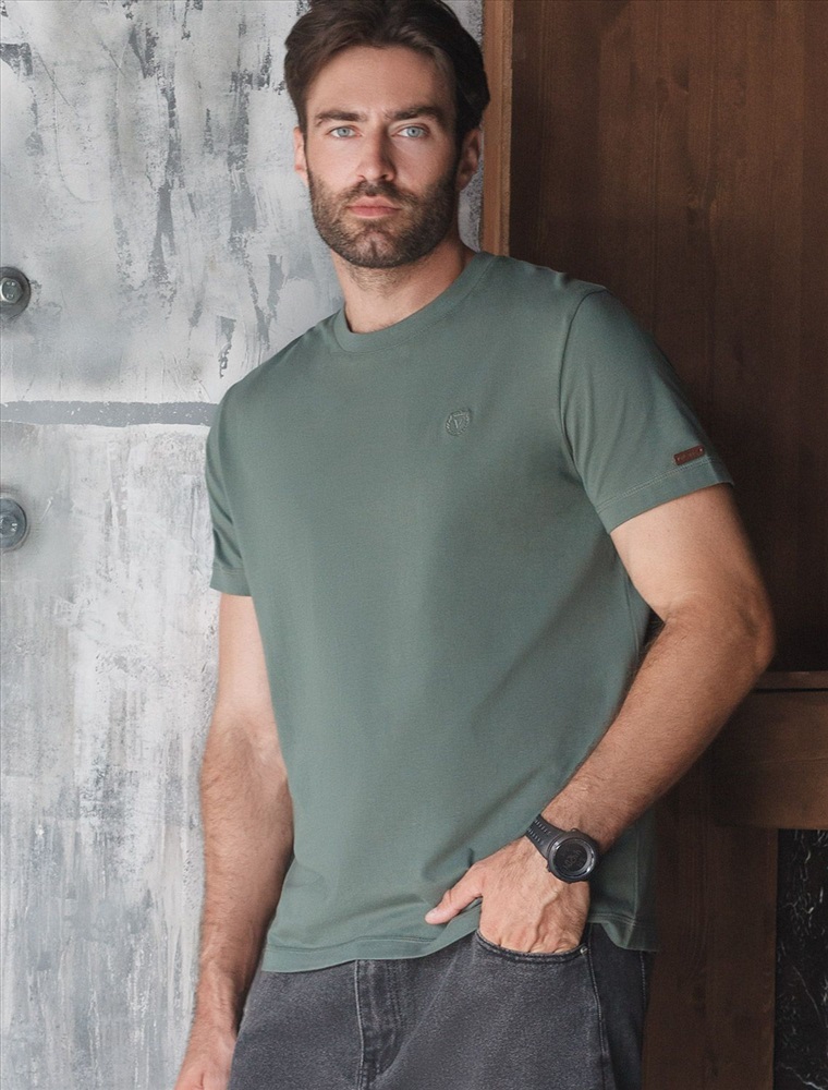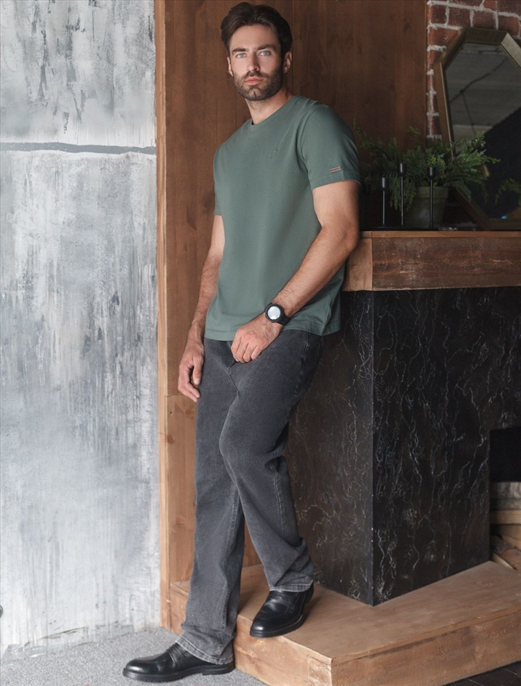 Базовая футболка темно-оливкого цвета из премиального хлопка с эластаном полуприлегающего кроя станет универсальным решением для любого случая. Прямой крой обеспечивает комфортную посадку на любую фигуру, включая большие размеры, подходит как на низкий, так и на высокий рост. Выполненная из натуральной ткани, она обладает дышащими свойствами, а за счет эластичности сохраняет форму даже после длительного ношения и многочисленных сирок.