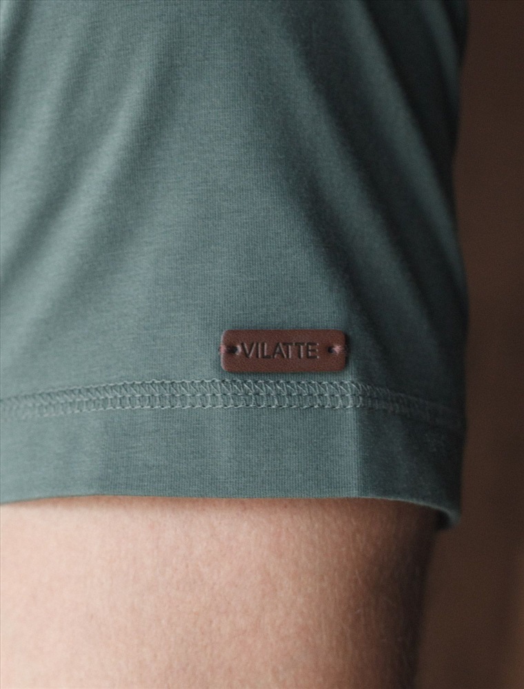 Однотонная футболка выполнена в минималистичном стиле, дополнена аккуратной вышивкой на груди в виде буквы V в тон изделия, а так нашивкой на рукаве из эко-кожи с логотипом VILATTE. Подходит как классический вариант для работы в офисе под пиджак, так и для повседневной носки или занятий спортом. Мягкая ткань приятна к телу, не вызывает дискомфорта и идеально подходит для дома или летних прогулок благодаря короткому рукаву.